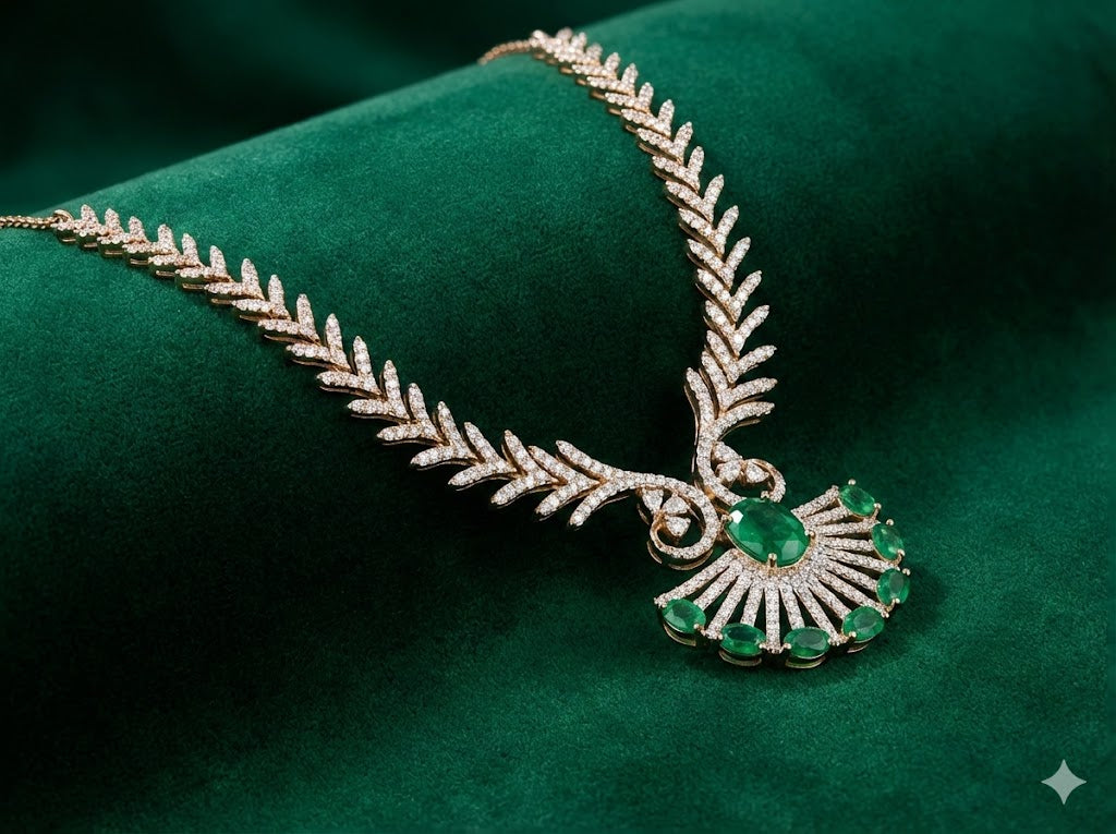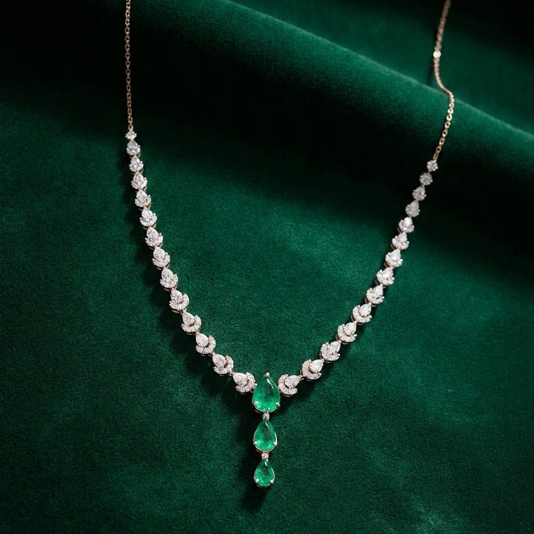 Emerald Verdant V-Diamond Necklace Set