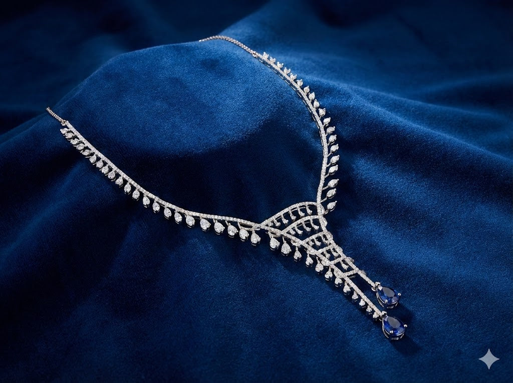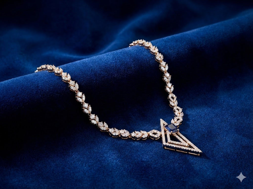 Azure Geometric V-Diamond Necklace Set