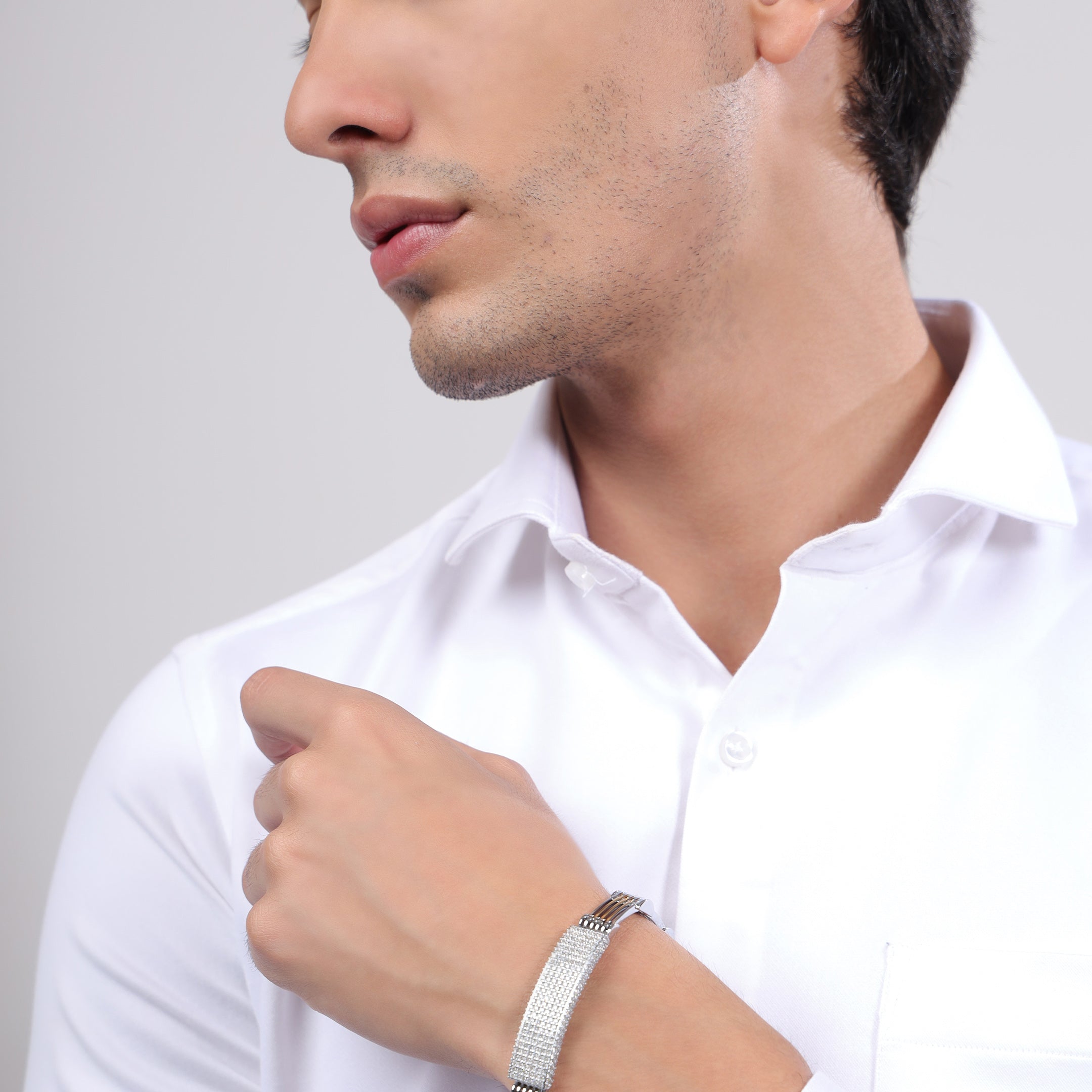 Apex Radiant Bar-Link Men's Silver Bracelet