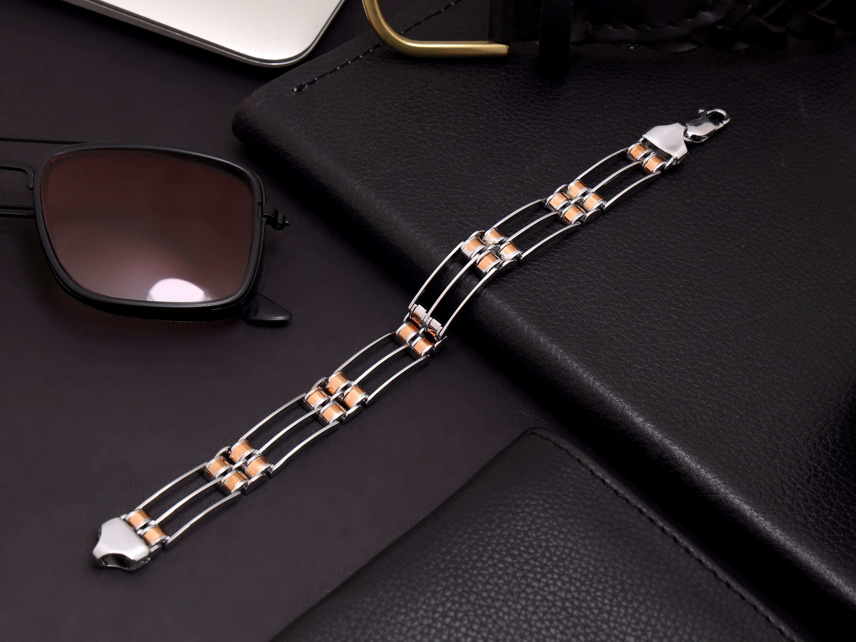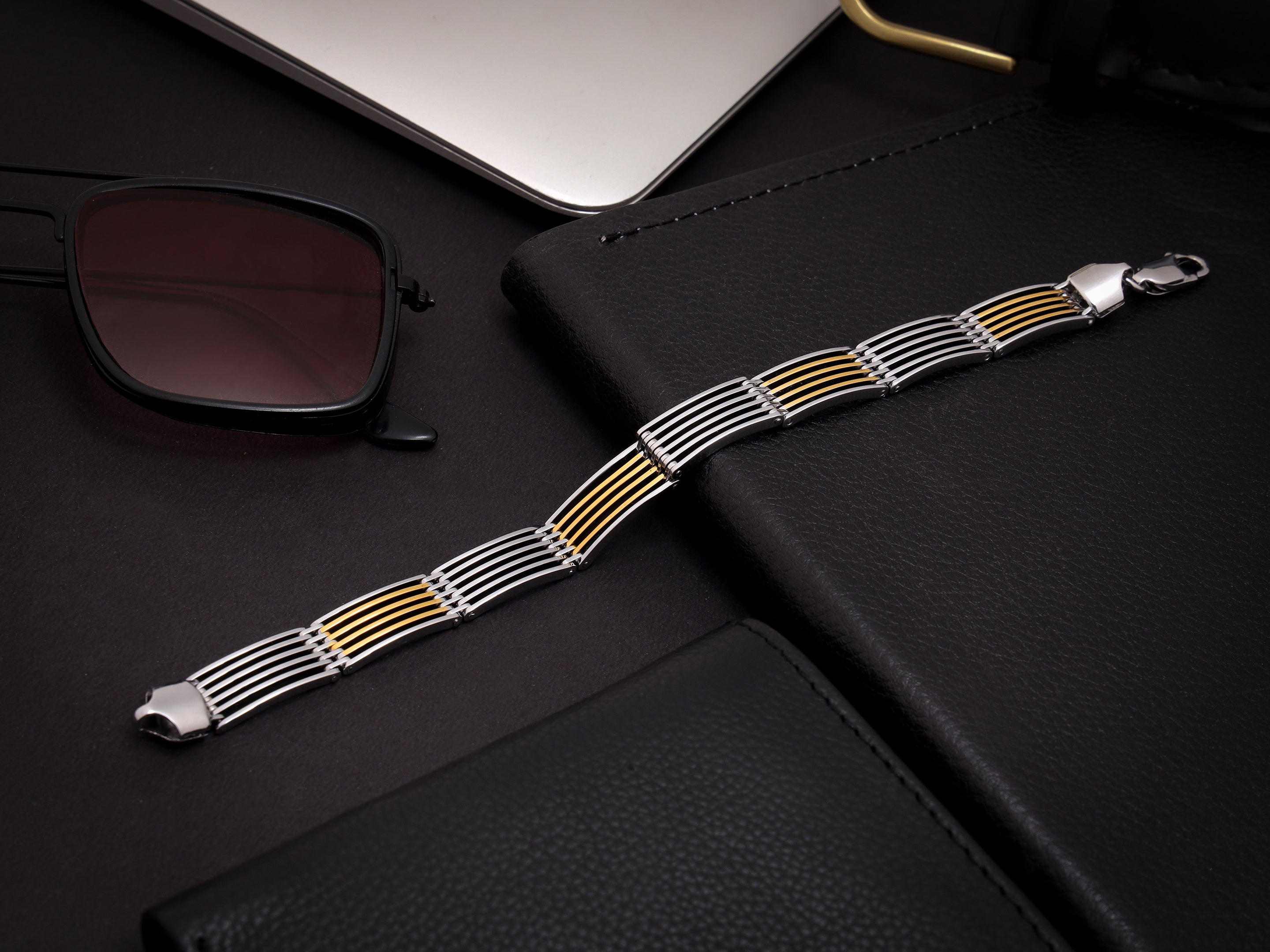 Golden Grandiose Interlocked Men's Silver Bracelet