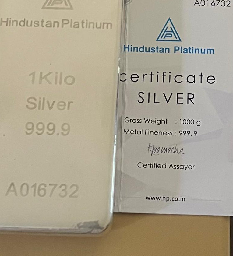 Silver LBMA Hindustan Platinum 1KG Bar