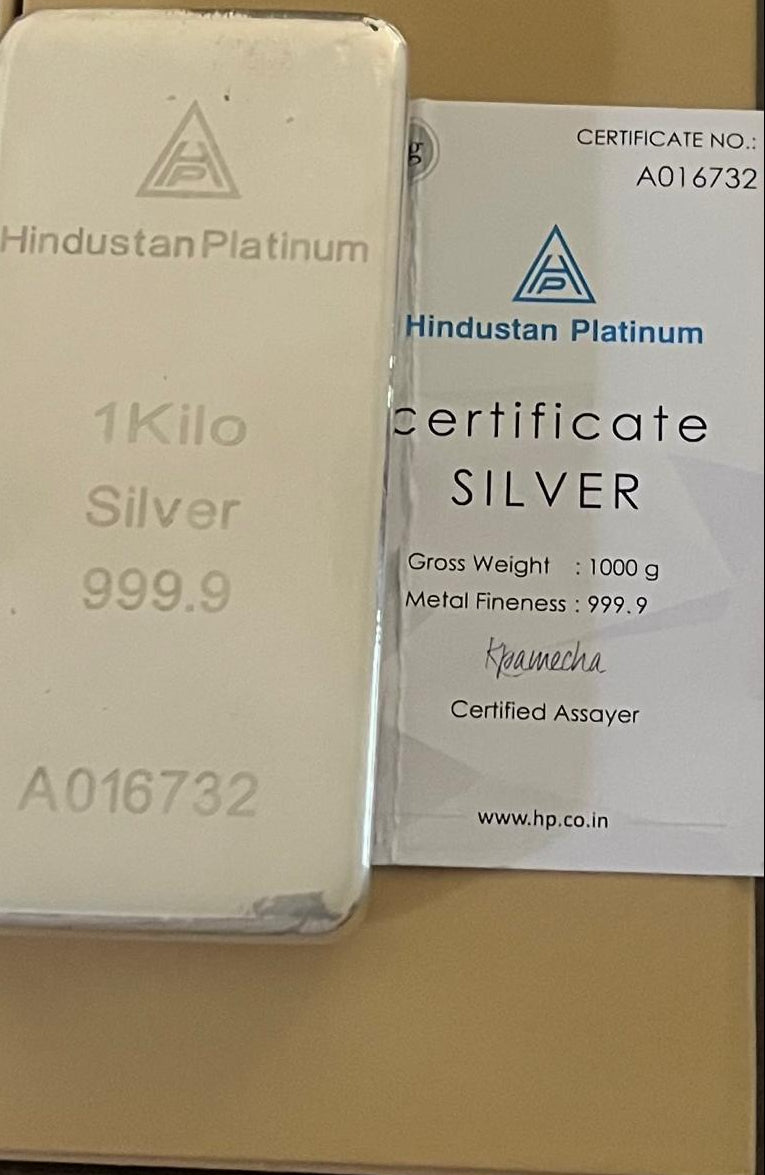 A Hindustan Platinum 1 kg silver bar is an LBMA-accredited bullion product that contains a minimum of 99.9% pure silver. The bar is produced at Hindustan Platinum's refinery in Navi Mumbai, India, which is recognized by the London Bullion Market Association (LBMA) for its high-quality standards.