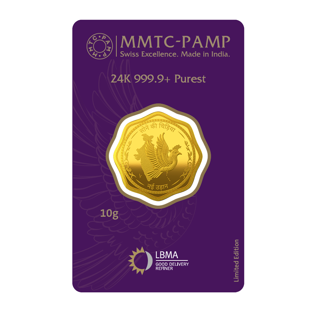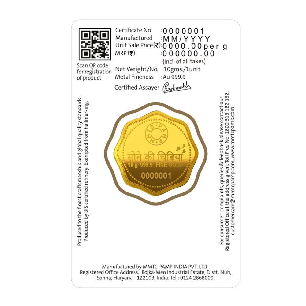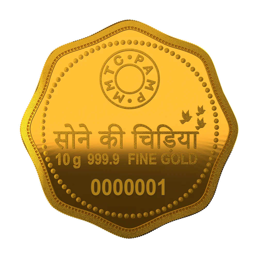 10 GM GOLD 999.9 MINTED COIN OCTAGONAL SONE KI CHIDIYA MINTED CARD (BOX)