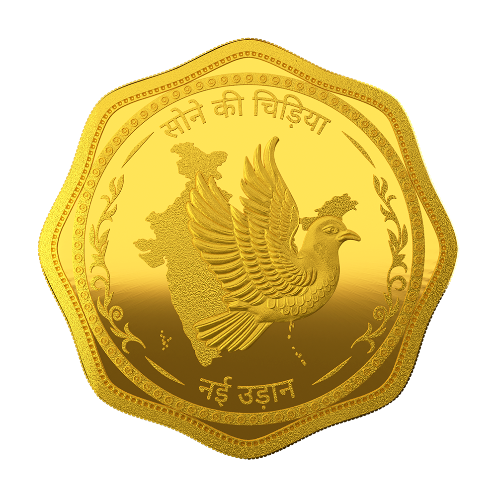 This stunning 10 gram, 99.99%+ (999.9+) Jupiter Octagonal Micro is a bird that combines the essence of India's remarkable city with the spirit of 'Nayi Udaan', a spirit of new flight for new hope as a new India emerges. The 10 gram collectible, crafted in 99.99%+ purest gold, celebrates India's rich heritage and its journey towards a brighter future. Once known as the "Sone ki Chidiya", India stood for unmatched prosperity and cultural wealth. This coin beautifully reimagines that spirit with a golden bird in flight over a map of India, symbolizing resurgence and pride. The coin represents freedom, unity and new beginnings. With intricate embossing, a premium finish and limited-edition exclusivity