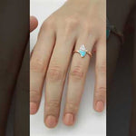 The Ariana Bleu Fin Diamond Ring is a stunning fusion of modern design and timeless elegance. This exquisite piece features a delicate rose gold band that gracefully encircles the finger, leading to a captivating centerpiece. The ring showcases a harmonious blend of turquoise enamel and sparkling diamonds, creating a unique and eye-catching contrast. The turquoise, reminiscent of serene ocean waves, is complemented by a crescent of glittering diamonds, adding a touch of brilliance to the design. Perfect for those who appreciate both artistry and beauty, this ring is a true statement of sophistication and charm.