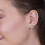 The Aurora Arch Diamond Earrings complement the pendant with their matching design, featuring delicate curves reminiscent of the aurora arch. Each earring showcases a stunning oval-shaped cluster of diamonds at its center, surrounded by a graceful arc of sparkling diamonds. The elegant design and intricate detailing of these earrings capture the essence of the aurora borealis, adding a touch of celestial beauty to any ensemble.