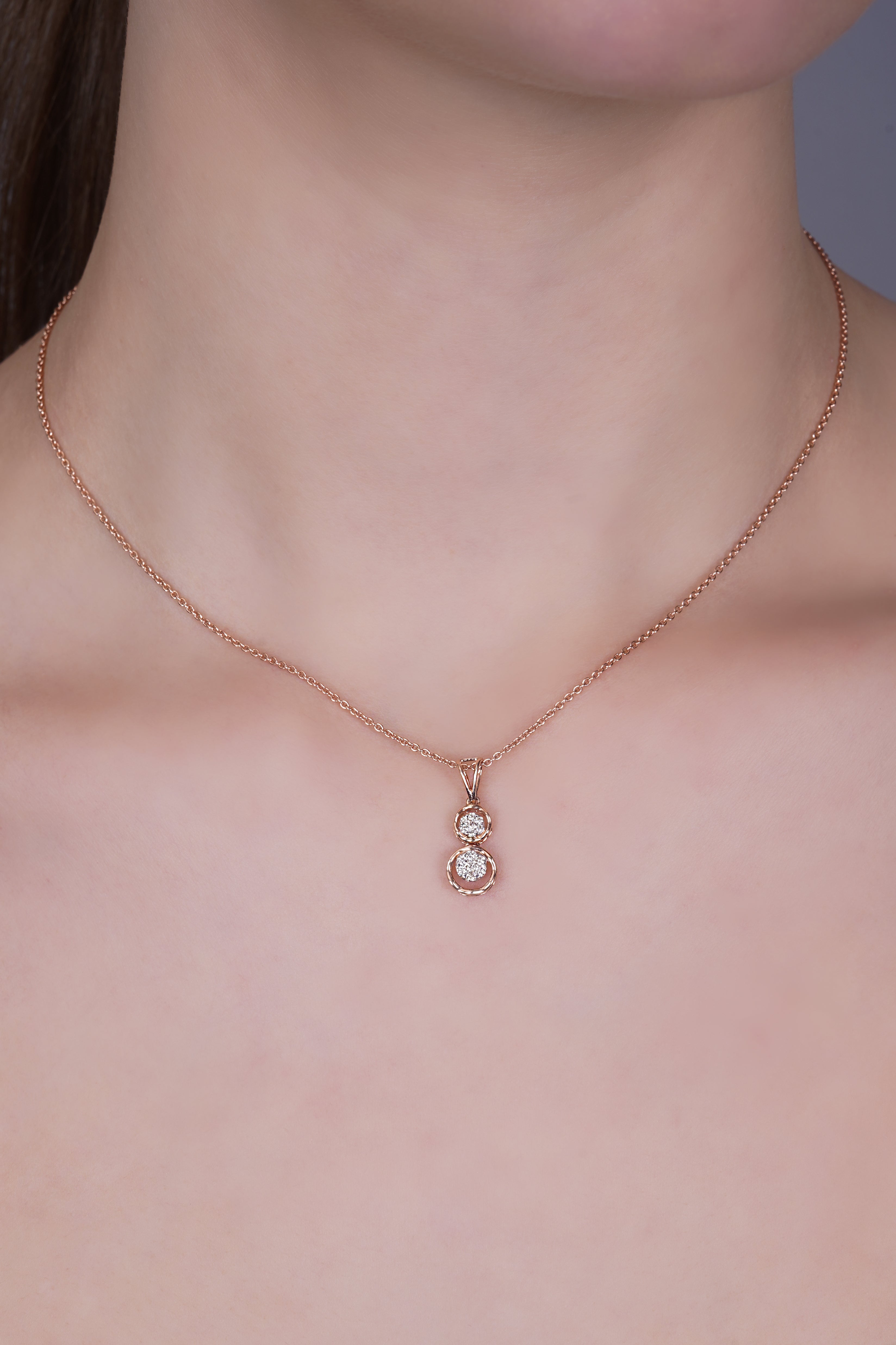 The Brilliant Duo of Sphere Diamond Pendant embodies a captivating fusion of elegance and sophistication. This pendant features two connected spheres, each adorned with a dazzling array of diamonds meticulously arranged to form perfect circles. The smaller sphere, at the top, glistens with radiant brilliance, while the larger sphere adds depth and dimension to the design. The seamless harmony between the two spheres creates a mesmerizing visual effect, capturing the essence of timeless beauty and refined craftsmanship.