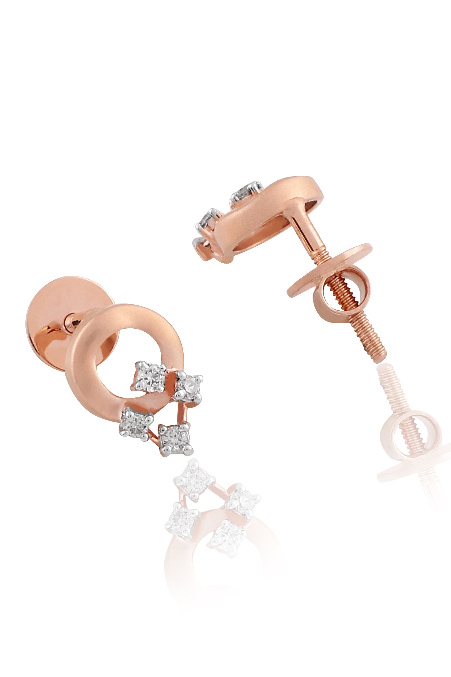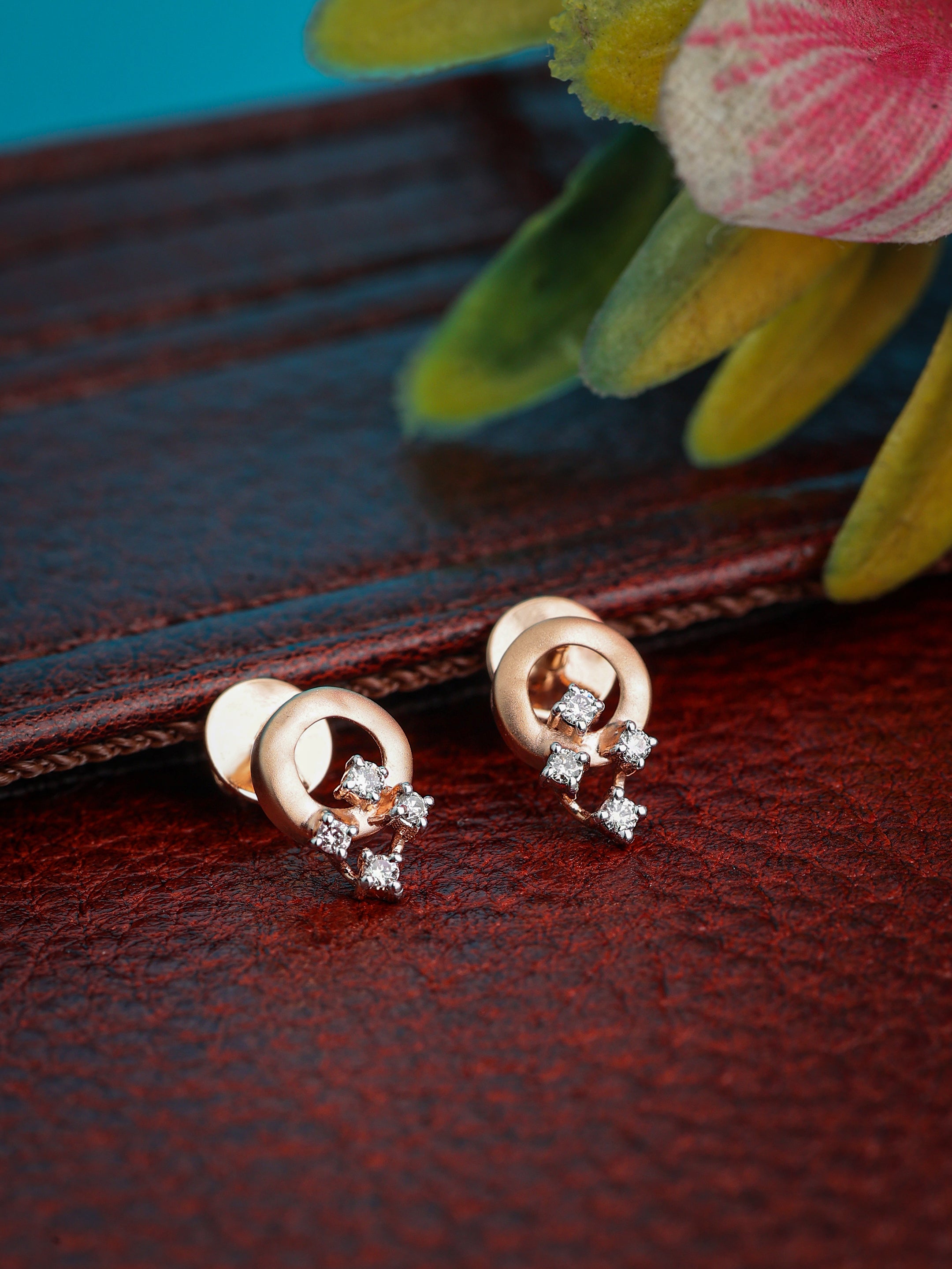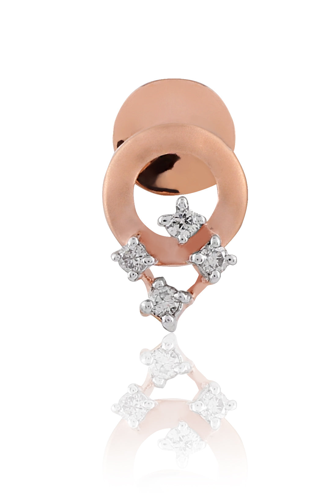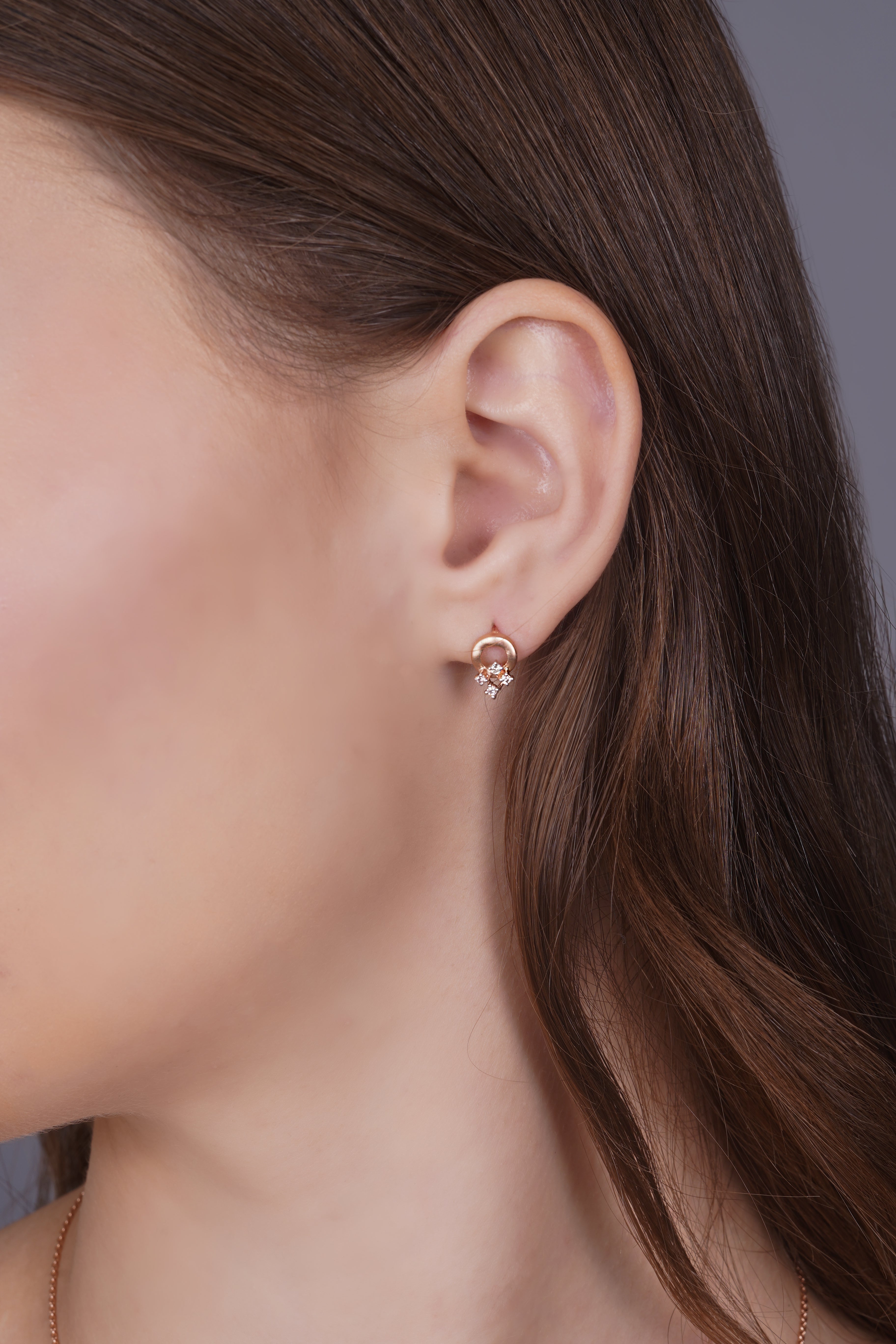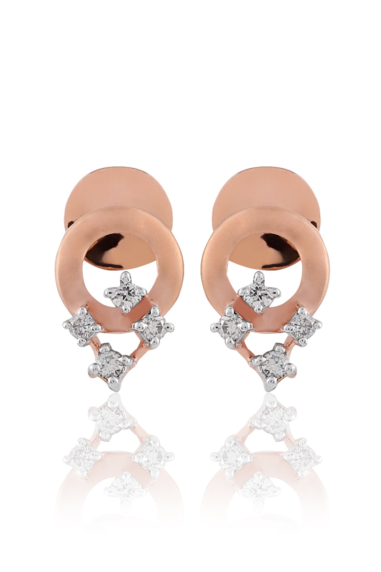 Introducing the Concentric Circles Diamond Earrings. Elevate your elegance with the timeless allure of our Concentric Circles Diamond Earrings. Crafted with precision and artistry, these earrings encapsulate the beauty of harmonious design. Featuring a circle of rose gold adorned with four exquisite diamonds, these earrings radiate a captivating charm. The diamonds elegantly drop-down, reflecting light with every movement, creating an enchanting play of sparkle.
