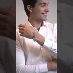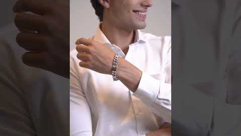 Make a bold impression with the Crisslink Royale Dual-Tone Men's Bracelet, a masterful combination of elegance and strength. This bracelet features sleek silver segments accented with gold grid-like lines, perfectly balanced with striking crisscross links at the center. Adorned with shimmering cubic zirconia, the braided interwoven design creates a luxurious focal point, blending artistry with masculinity. The interplay of textures and tones ensures this piece stands out, whether paired with formal or casual attire.