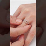 The Vespera Lattice Entwine Diamond Ring is a breathtaking fusion of modern elegance and timeless beauty, crafted in luxurious rose gold. This exquisite piece features an intricate design where two delicate bands twist together, one shimmering with a trail of brilliant diamonds. The intertwining bands symbolize unity and eternal love, while the diamonds add a sparkling touch of sophistication. The ring's open and airy design gives it a light and ethereal feel, perfect for those who appreciate refined artistry. With its unique and graceful appearance, this ring is a true statement piece, ideal for any special occasion or as a symbol of lasting commitment.