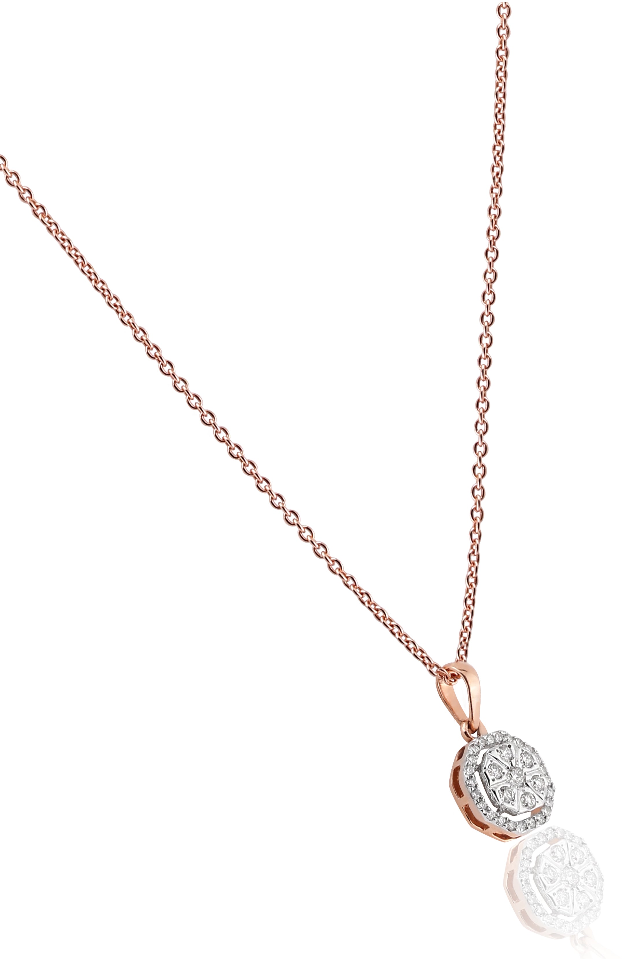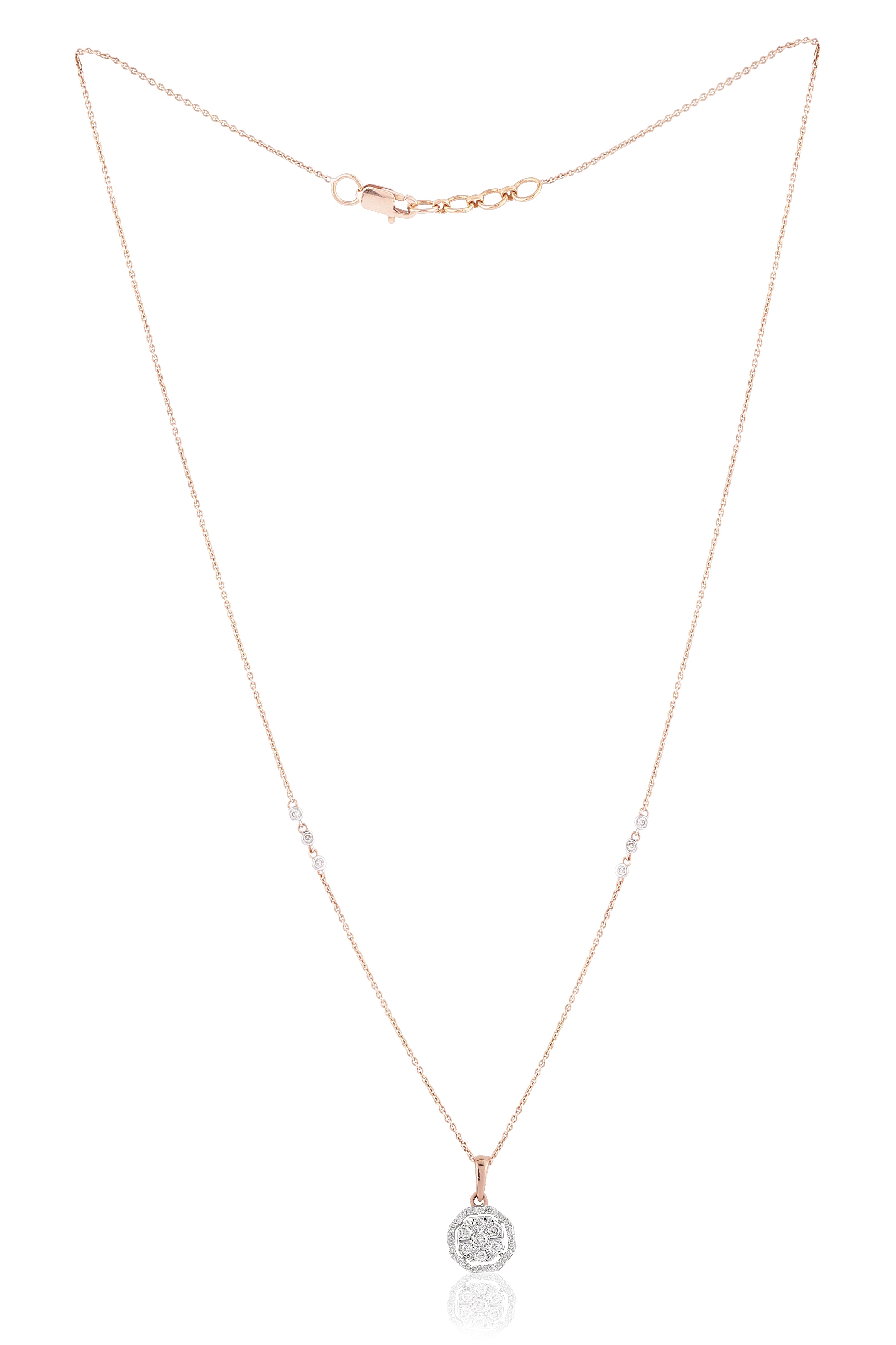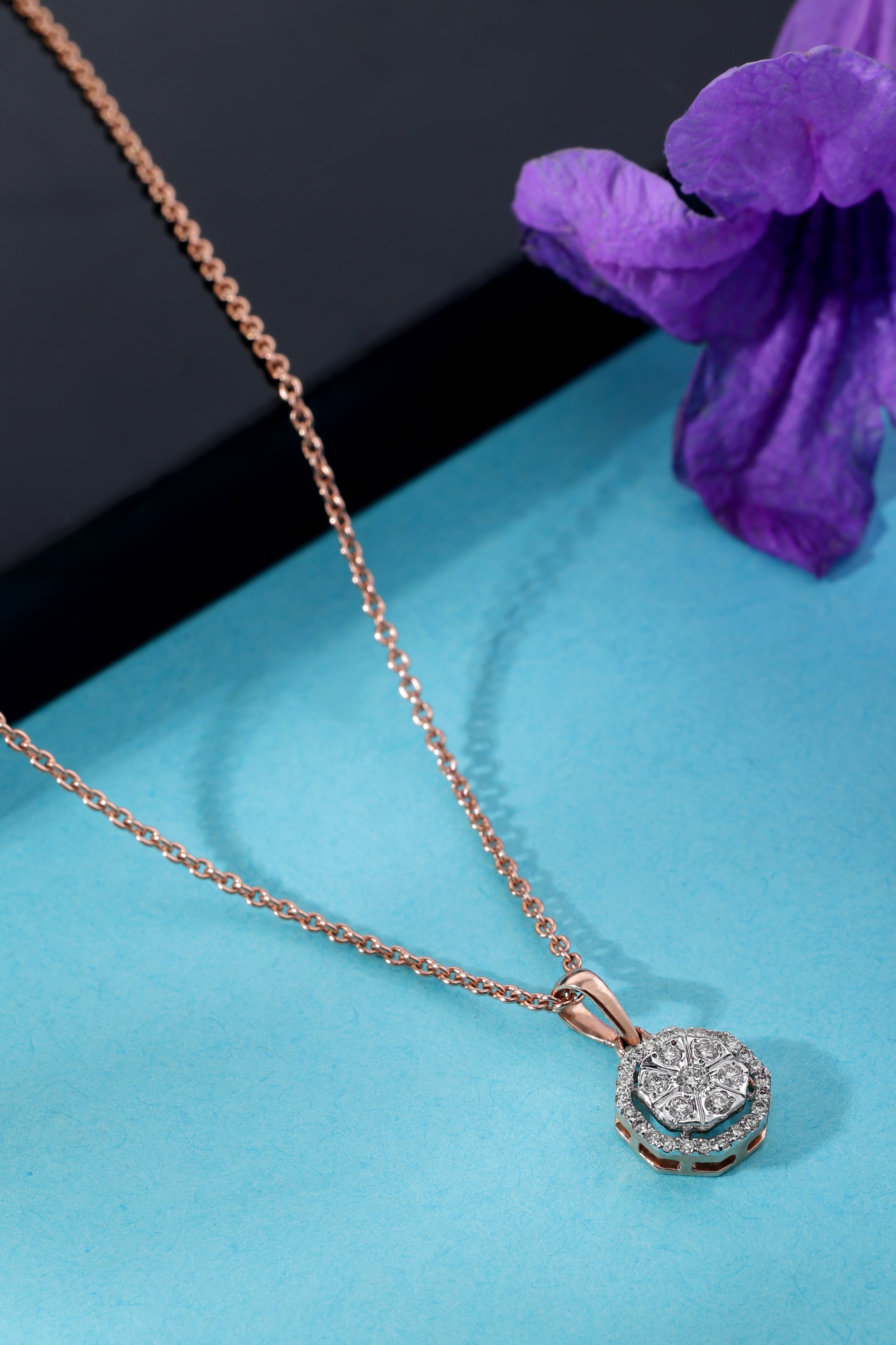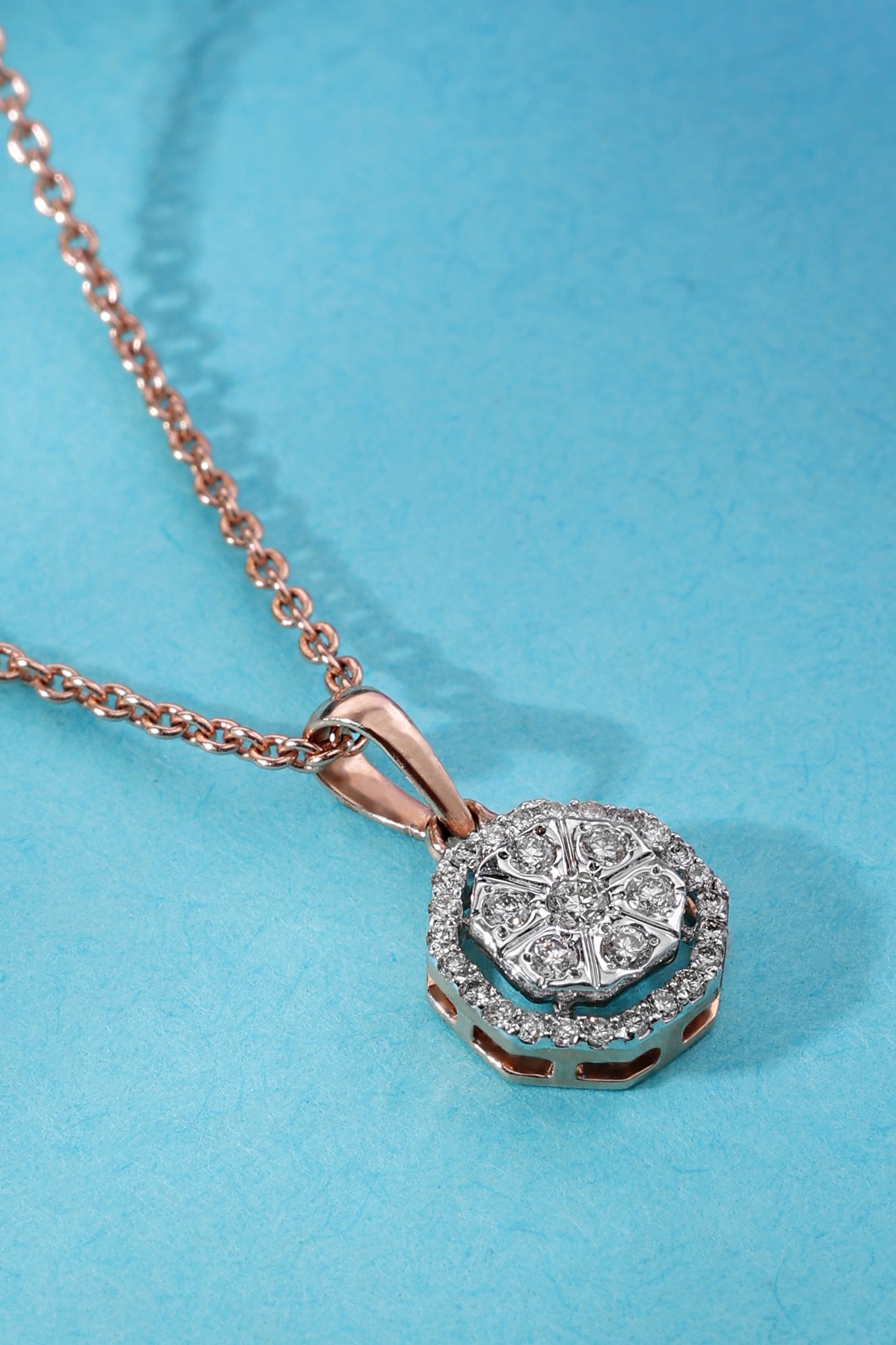 The Dazzling Octagonal Orb Diamond Pendant is a mesmerizing testament to timeless elegance and sophistication. At its heart lies a radiant round-shaped diamond, exuding unparalleled brilliance and beauty. Surrounding the central diamond is an octagonal frame, adorned with a shimmering array of diamonds that sparkle with every movement. Each facet of the octagonal orb reflects light in a dazzling display, creating an aura of opulence and grandeur. The intricate craftsmanship and exquisite design of the pendant make it a stunning statement piece that elevates any ensemble with its celestial charm.