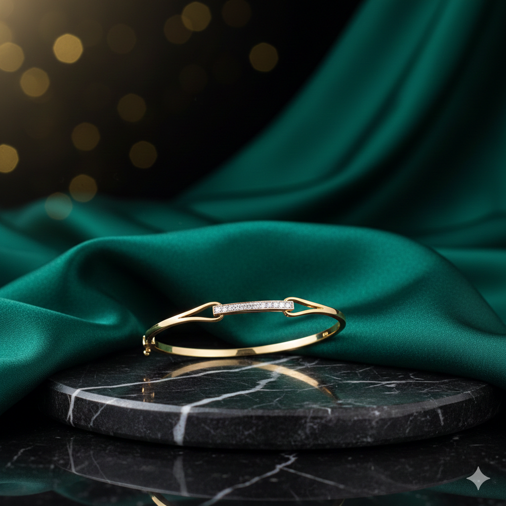 The Gilded Pillar Link Bracelet is a masterclass in minimalist structural design and linear brilliance, designed to provide a sleek, authoritative accent to the wrist. Meticulously handcrafted in 14k yellow gold, this artistic bracelet features a central horizontal bar, meticulously pavé-set with a shimmering row of premium brilliant-cut diamonds that create a continuous ribbon of icy fire. This radiant centerpiece is elegantly flanked by two high-polish golden wishbone-style links that transition seamlessly into a slender yellow gold band, offering a sophisticated play on negative space. The rich, traditional warmth of the yellow gold provides an opulent foundation that beautifully amplifies the multi-directional light of the diamonds, resulting in an aesthetic that is both avant-garde and timelessly refined. Perfect for adding a touch of artisanal luxury to a professional ensemble or serving as a radiant, singular statement for an evening social, this signature pillar bracelet is the definitive choice for the woman who values geometric strength and understated elegance.