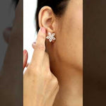These exquisite earrings showcase a stunning floral design with a celestial twist. Each earring features a star-shaped motif composed of five petals, each intricately adorned with a myriad of sparkling diamonds. The openwork design of the petals creates a delicate and airy feel, allowing light to pass through and enhance the brilliance of the diamonds. At the center of each flower lies a larger stone, drawing attention and adding depth to the design. The combination of the star-like form and the floral inspiration gives these earrings a unique and elegant look, perfect for adding a touch of glamour to any ensemble.
