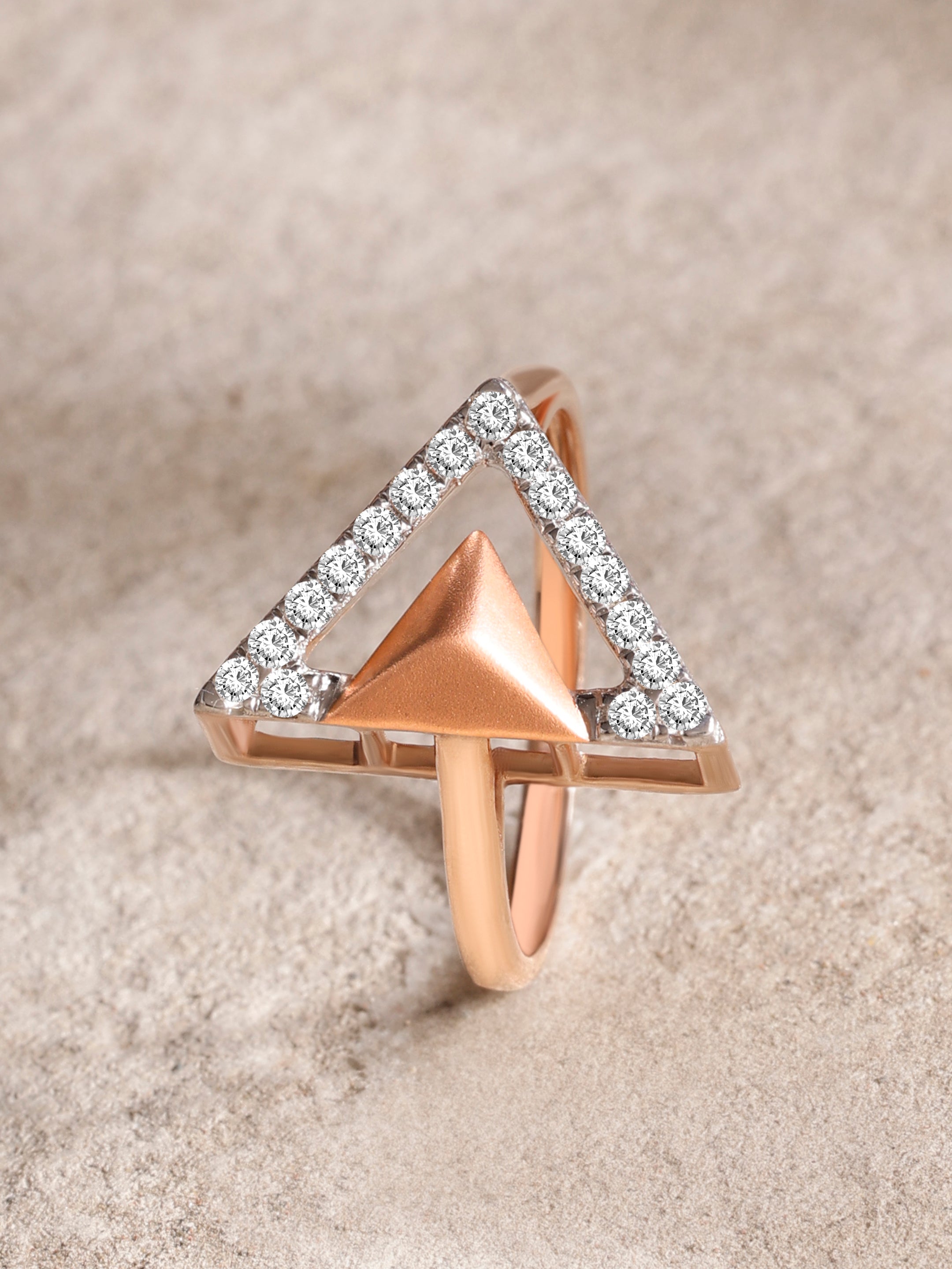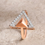 Introducing our Diamond Triangle Symphony Ring, a masterpiece of elegance and sophistication. Embodying sophistication, this ring showcases a round brilliant diamond at its center, embraced by a stunning triangle-shaped setting adorned with additional round brilliant diamonds. The meticulous craftsmanship and SIeek design make this piece a timeless treasure.