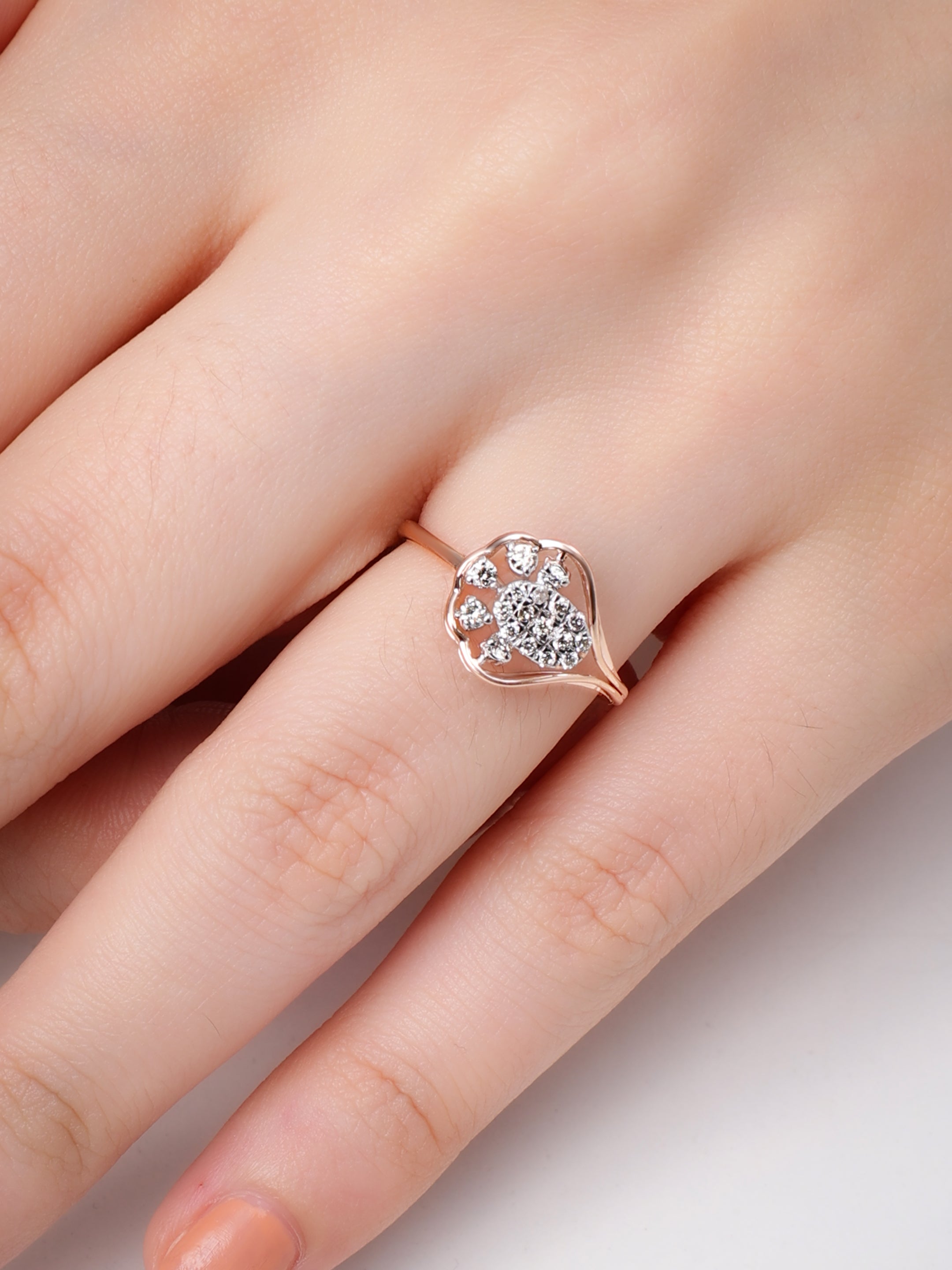 The Diavo Diamond Leaf Ring, a captivating piece that showcases a unique design featuring a prominent leaf motif adorned with a beautiful pattern of sparkling diamonds. The Diavo Diamond Leaf Ring combines nature-inspired elements with exquisite craftsmanship. The prominent leaf design takes center stage, symbolizing growth, strength, and connection to nature. The intricate diamond pattern within the leaf adds a touch of brilliance and sophistication, creating a captivating contrast between nature's beauty and the sparkle of diamonds.
