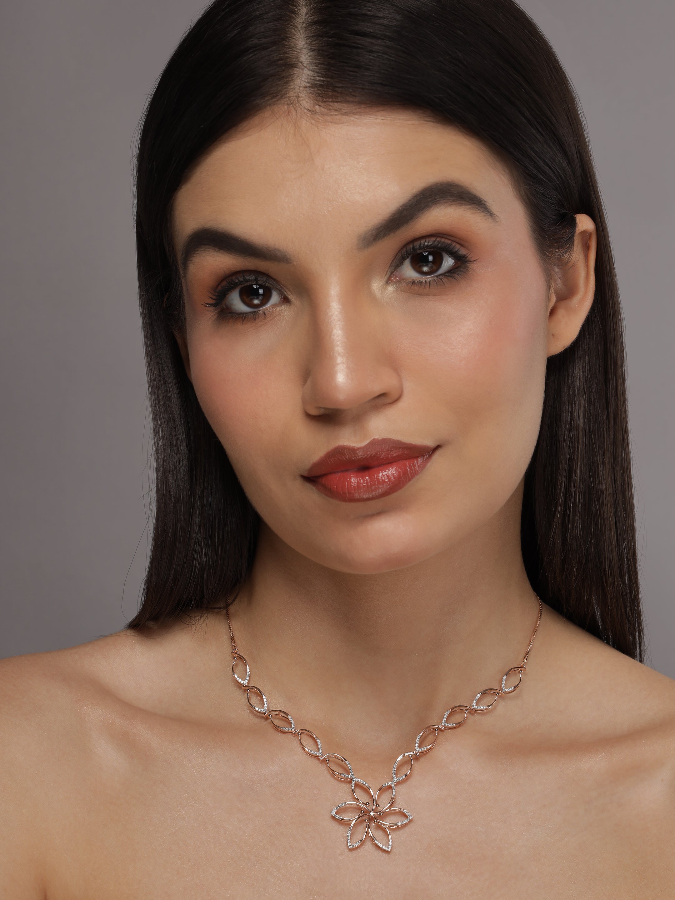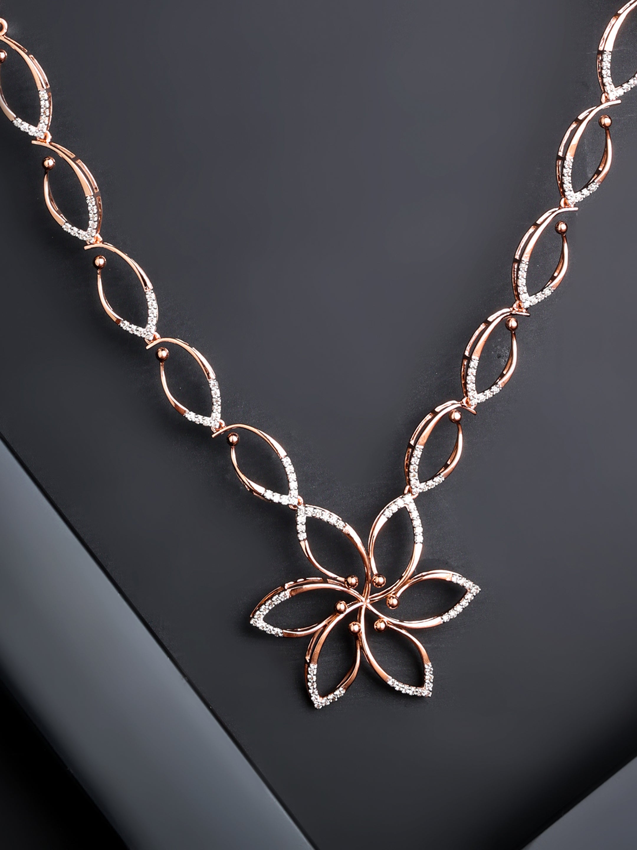 The Edgy Angel Droplet Diamond Necklace is a bold expression of contemporary elegance. Crafted with precision, this necklace features a cascade of angular droplet-shaped diamonds forming a striking silhouette. At its center, these dynamic shapes cleverly intertwine, creating a mesmerizing floral motif that exudes a sense of edgy sophistication and grace.