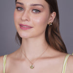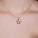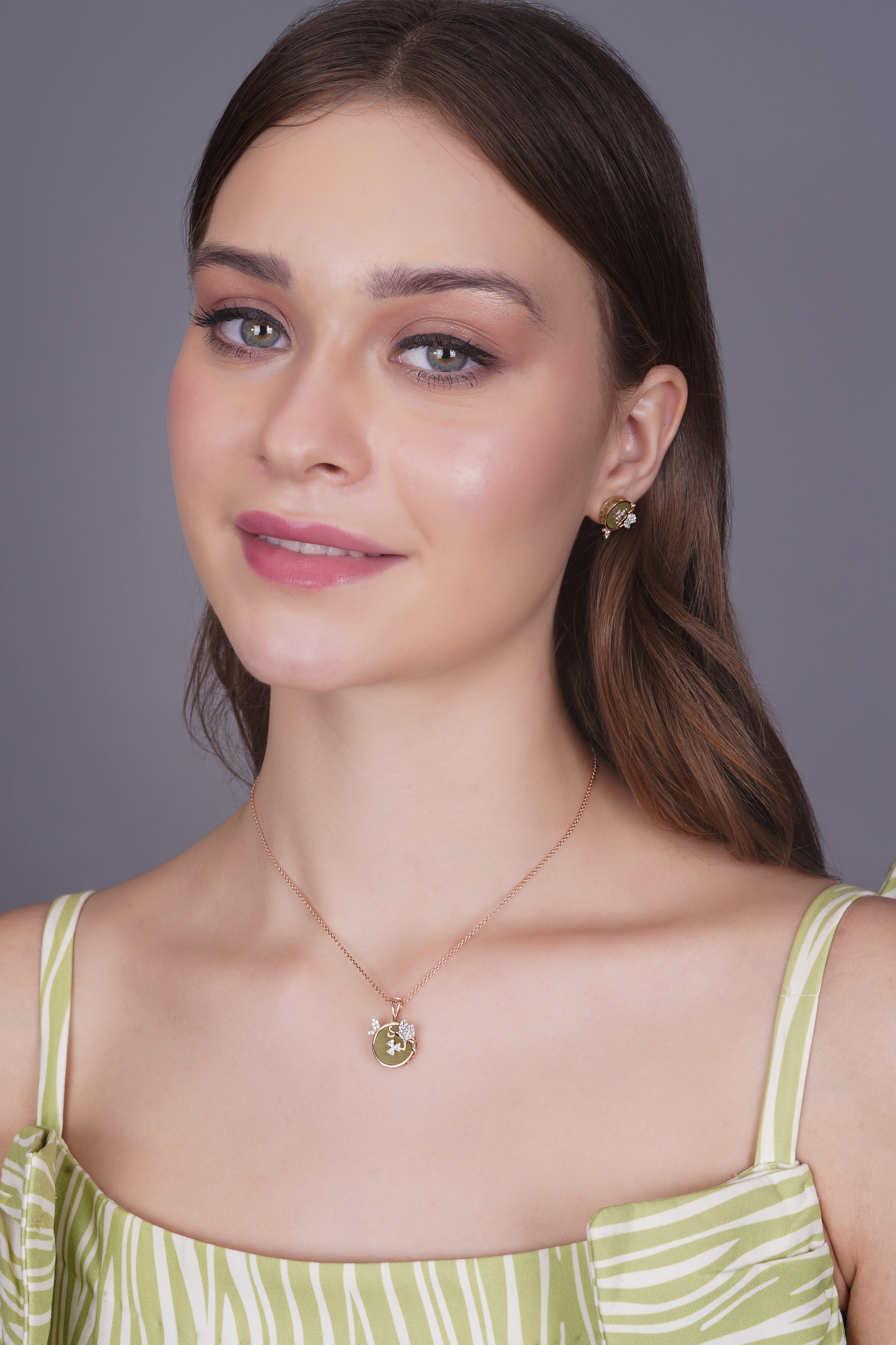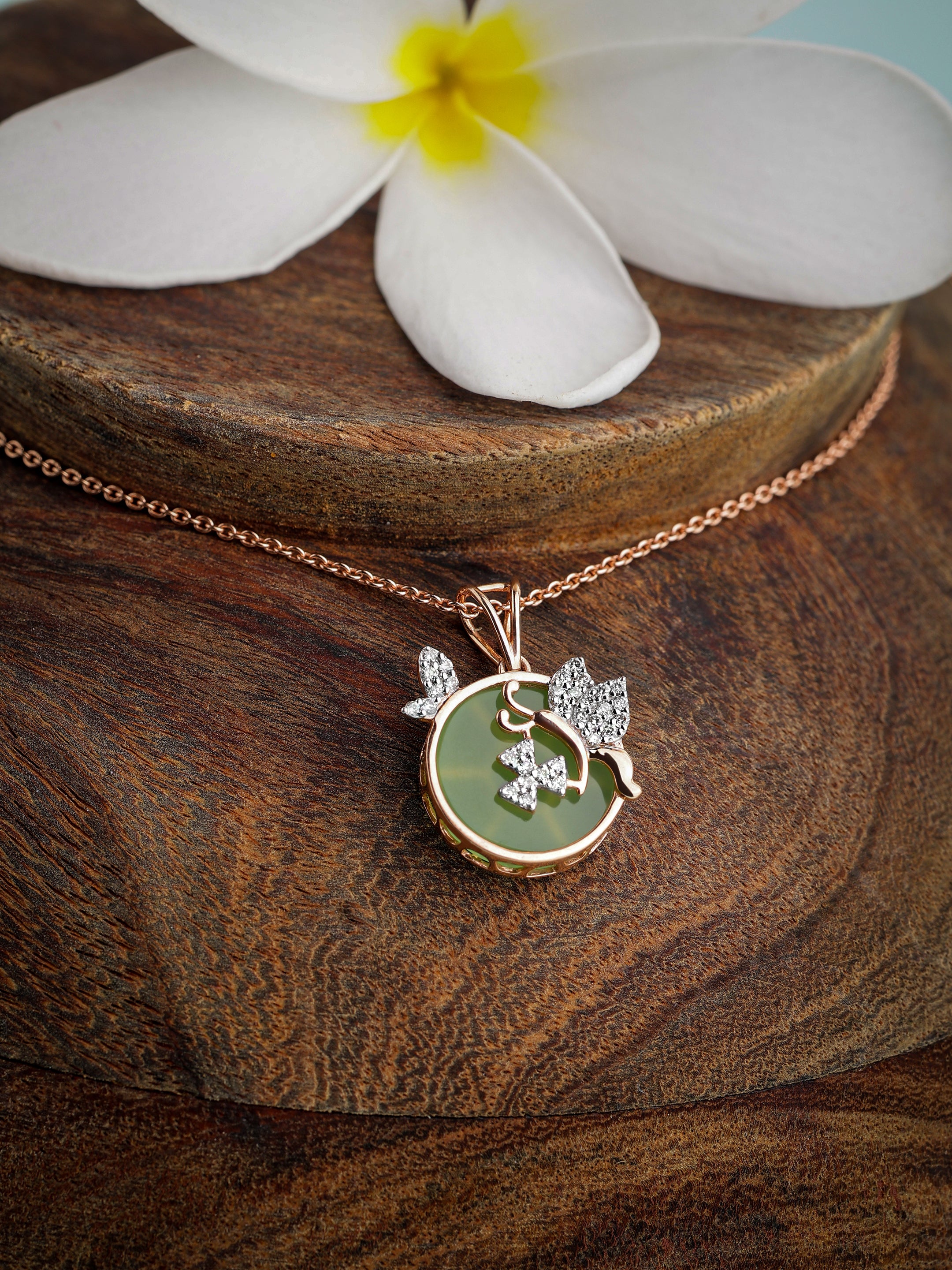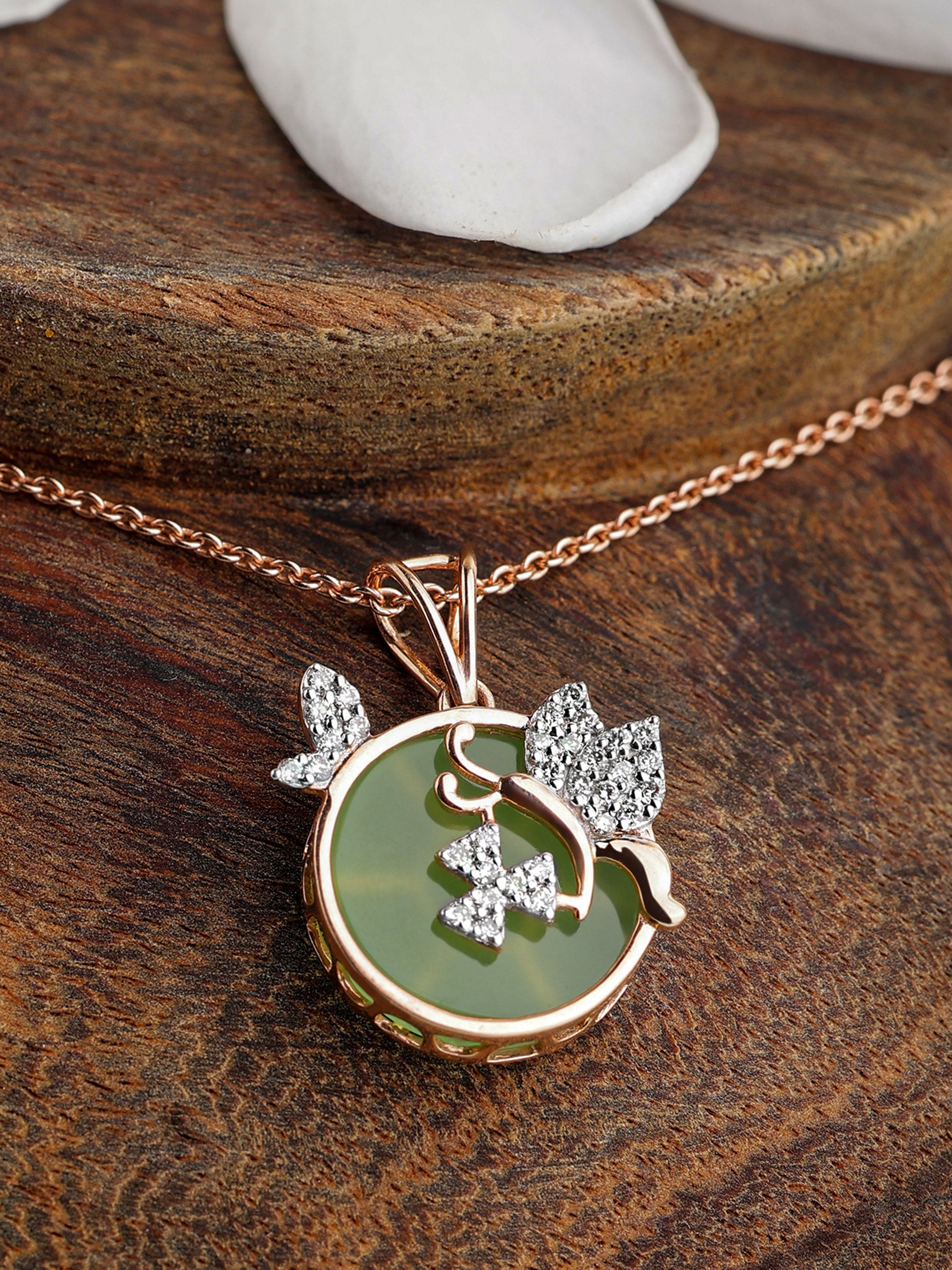 Introducing the Emerald Elegance Diamond Butterfly Pendant: This pendant embodies nature's grace. Crafted in gold, this pendant features a captivating greenish-colored stone at its heart. The exquisite butterfly shape takes flight with wings adorned by natural round brilliant diamonds. An ode to transformation and beauty, this pendant adds a touch of enchantment to your style.
