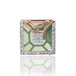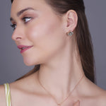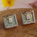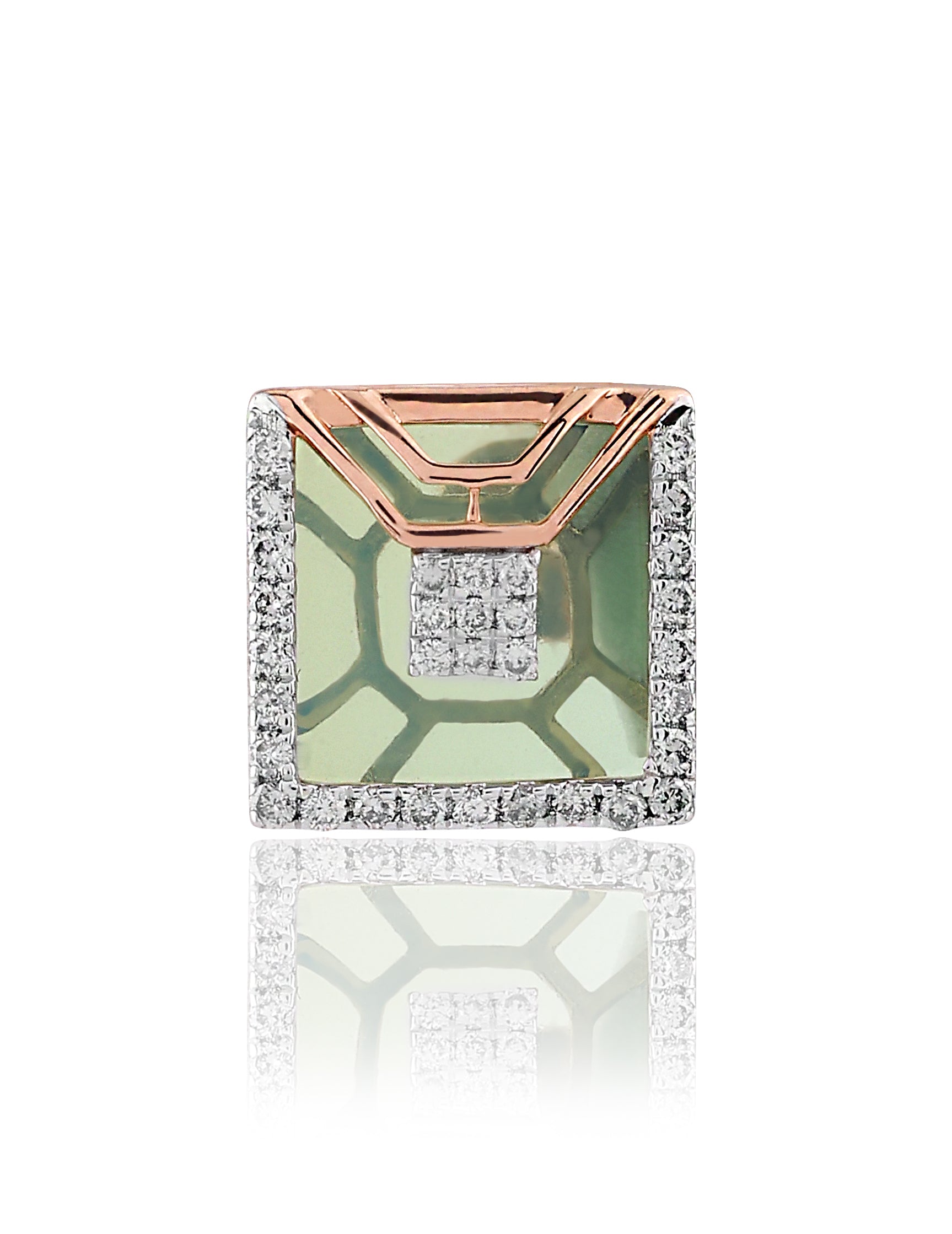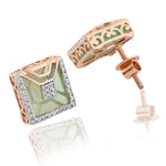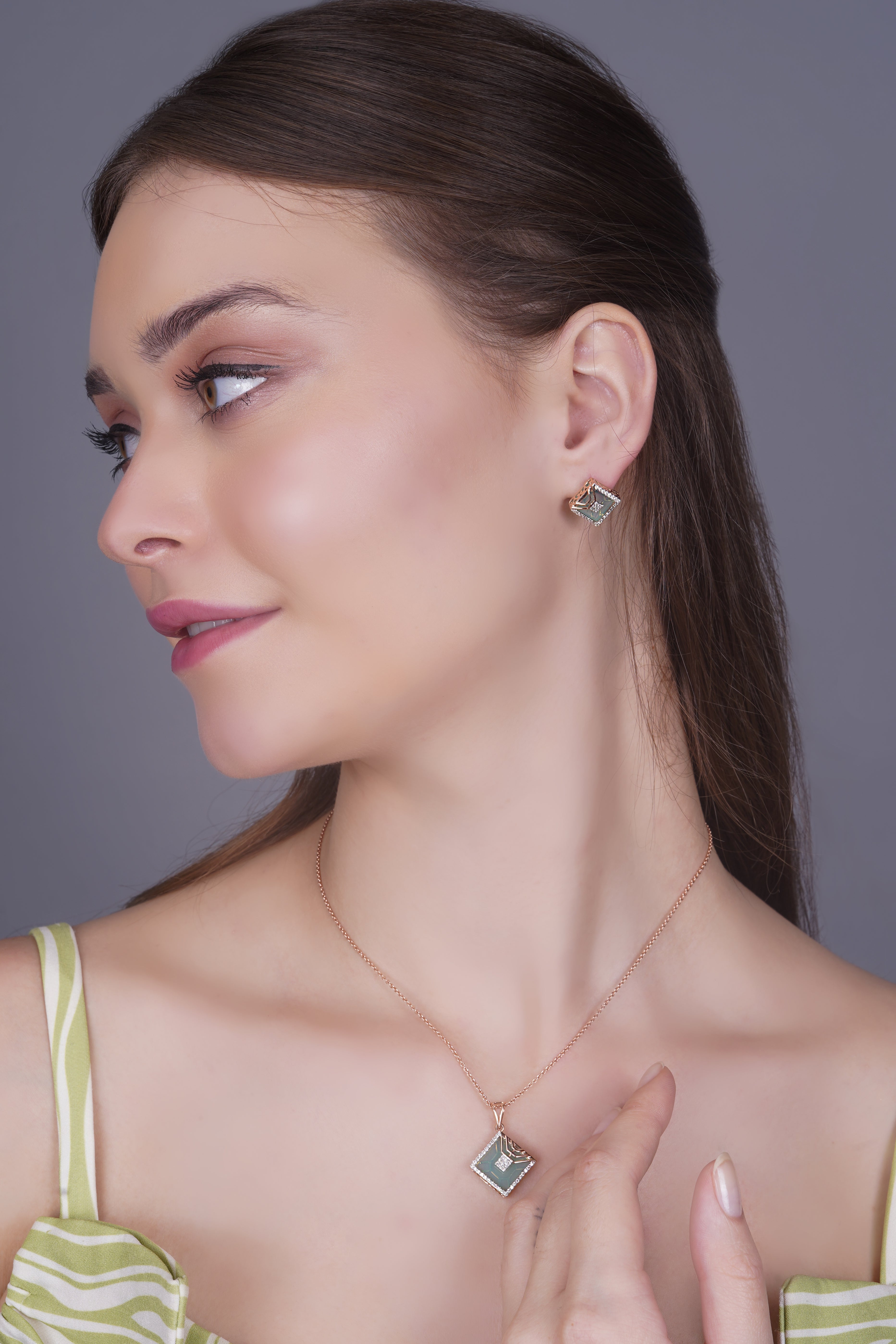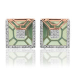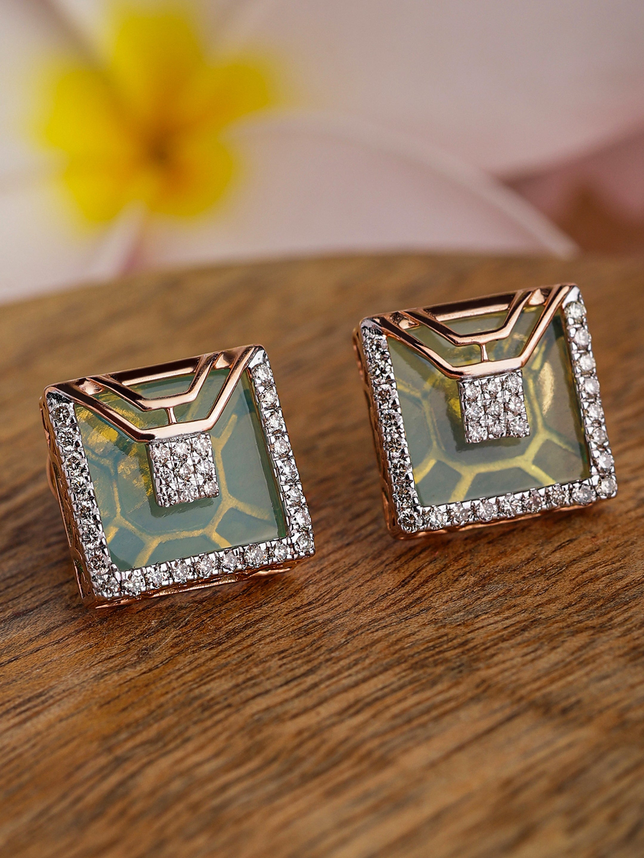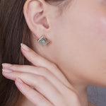 Introducing our Emerald Mirage Diamond Earrings – a fusion of elegance and allure in mesmerizing sea green hues. The Emerald Mirage Diamond Earrings are a captivating representation of timeless charm with a contemporary twist. Crafted in a captivating square shape, these earrings feature three sides embellished with round brilliant diamonds, evoking a symphony of radiance. At the heart of each earring, a captivating cluster of diamonds adds depth and brilliance, creating an enchanting mirage of light.