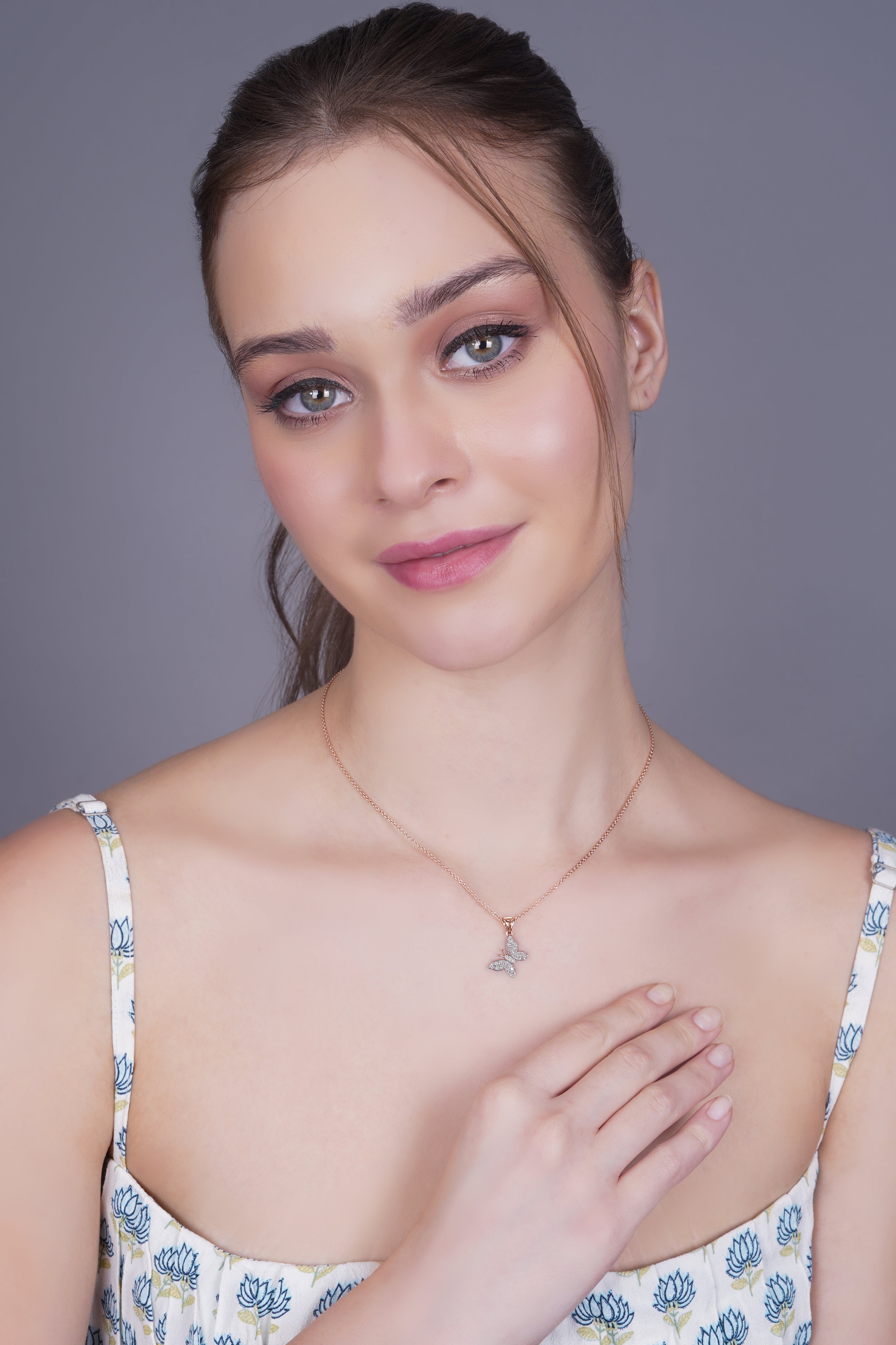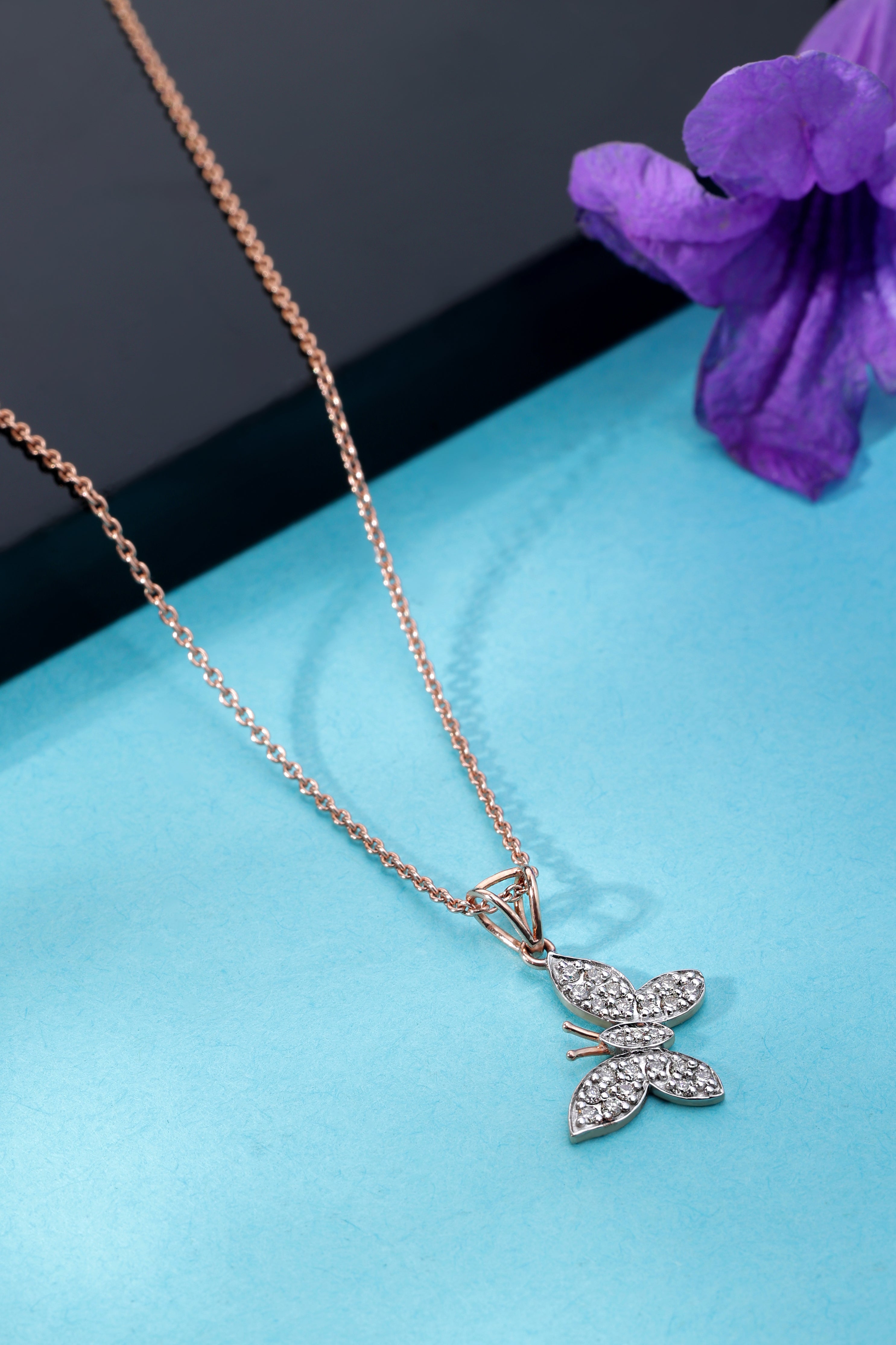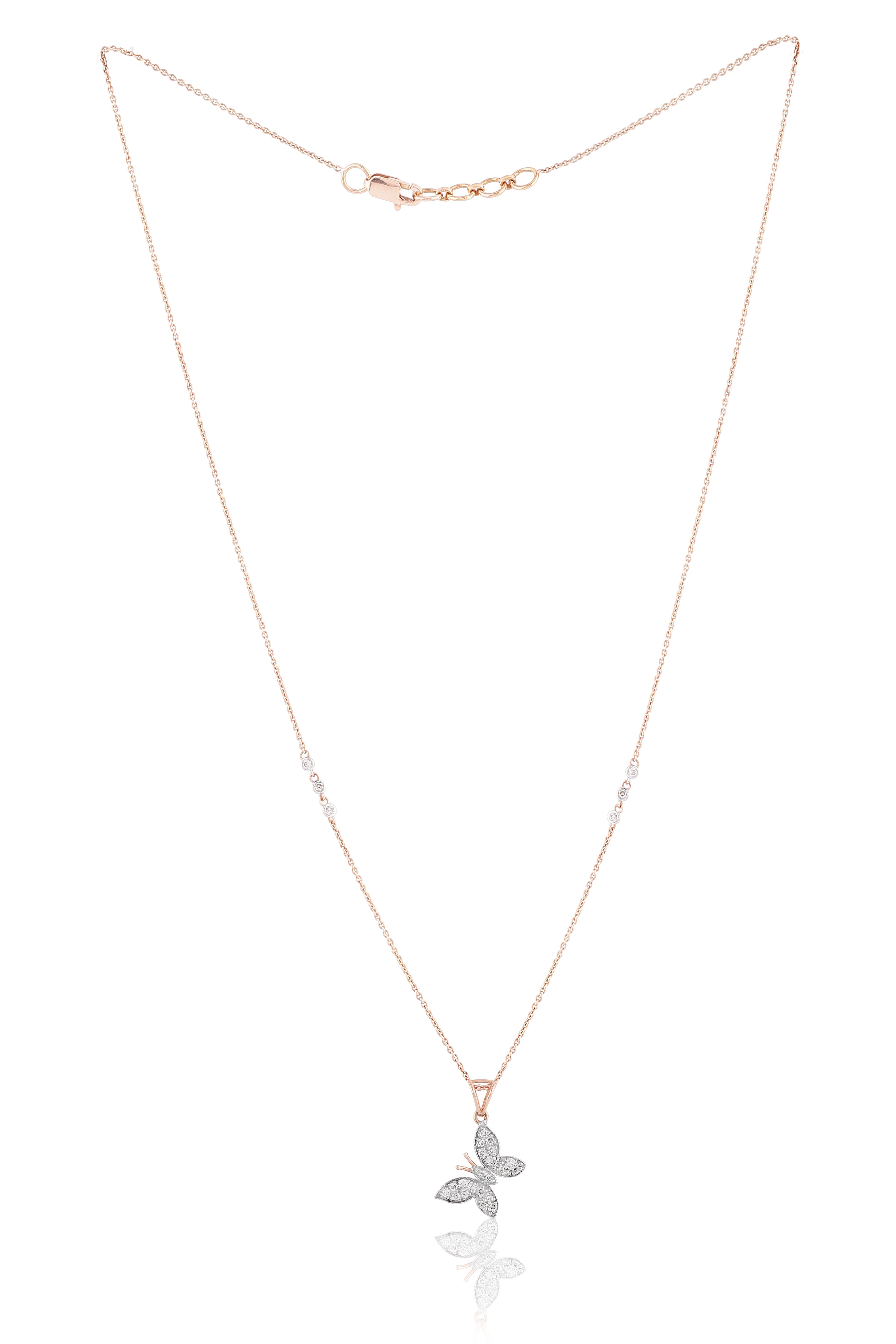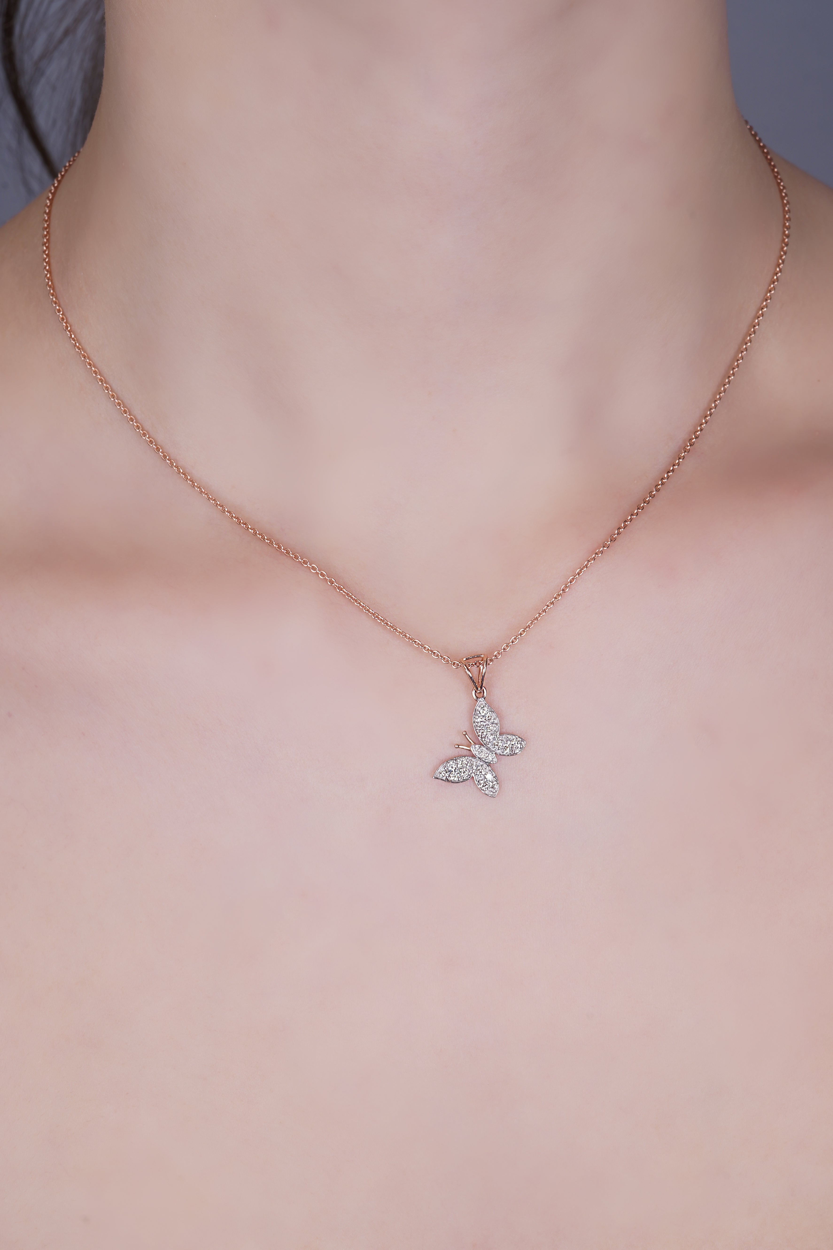 Introducing the Fluttering Wings Diamond Butterfly Pendant: Fluttering Wings Diamond Butterfly Pendant be a symbol of your unique style and embrace the delicate beauty of nature. Embodying the essence of nature's wonders, the "Fluttering Wings" Diamond Butterfly Pendant features a beautifully crafted butterfly shape. The intricate details of the butterfly's wings, delicately adorned with round brilliant diamonds, create a mesmerizing play of light and sparkle. The design exudes a sense of grace and sophistication, making it a perfect accessory for any occasion.