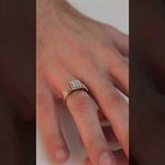 Introducing the Gilded Serenity Men's Diamond Ring – an enchanting masterpiece that captures the essence of elegance and grace. Crafted with precision, this ring boasts a rose gold band with exquisite inverted "V" shapes on either side, leading to a central square diamond setting. The intricate design features a square centerpiece nestled within a rose gold band adorned with sleek and captivating contours on both sides. This ring is a tribute to the allure of nature's beauty and the brilliance of diamonds.