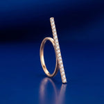 A modern, minimalist ring featuring a straight horizontal bar fixed atop a thin round band. The bar is set with a continuous row of Diamonds in a "pave" style, creating a shimmering effect across the finger.