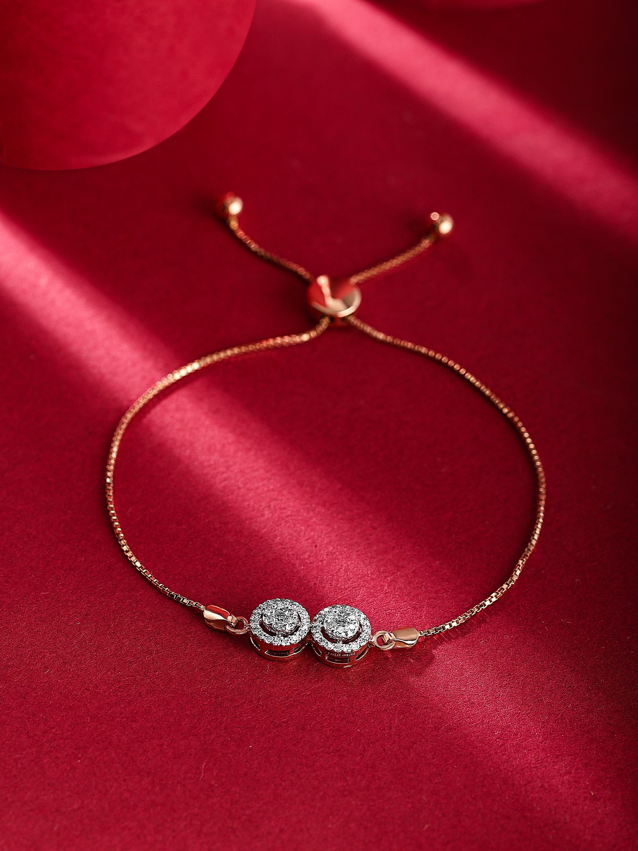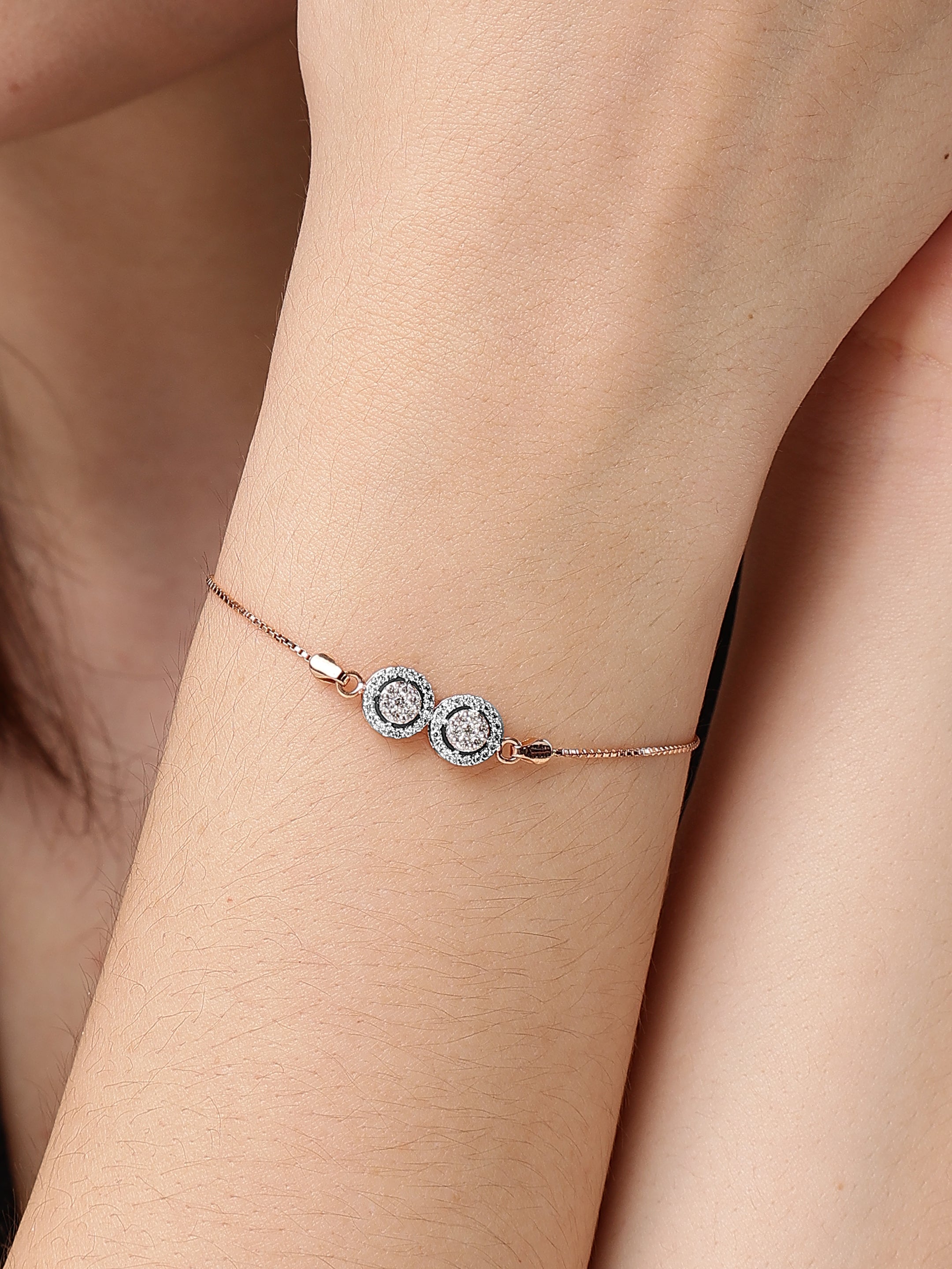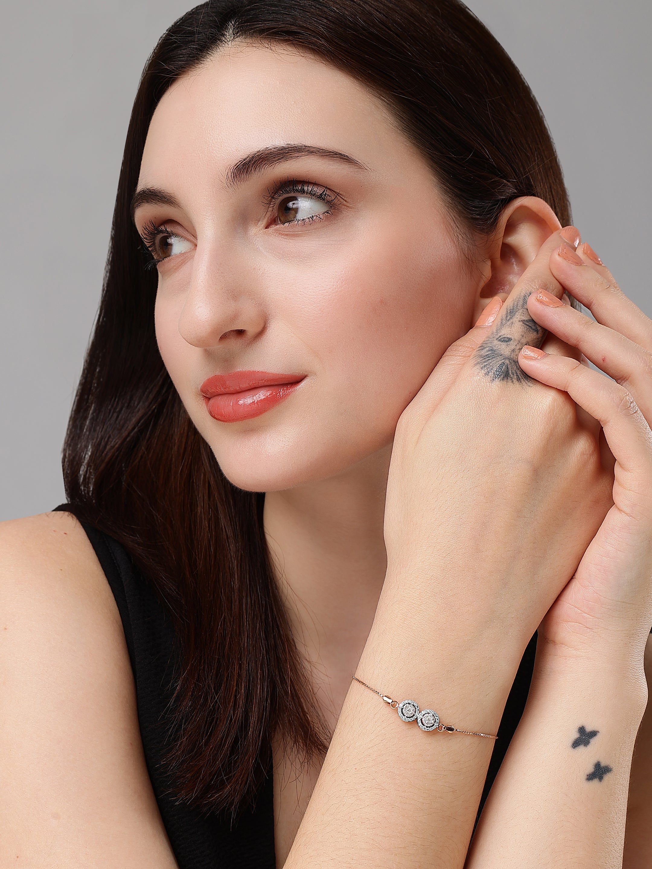Introducing our Interlinked Radiance Diamond Bracelet – a striking embodiment of timeless elegance. The bracelet showcases a graceful design with two circles seamlessly linked, representing the harmony between relationships. The delicate curvature and interplay of light and shadow offer an artistic touch to the piece, making it a versatile choice for any occasion.