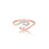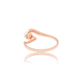 The Iris Liora Luna Diamond Ring is an exquisite piece that merges contemporary elegance with celestial inspiration. This captivating design features a sleek rose gold band that elegantly wraps around the finger, culminating in a unique and artistic centerpiece. The focal point is a radiant white enamel orb, symbolizing purity and harmony, which is suspended beneath a sparkling arc of diamonds. The interplay of the white enamel and brilliant diamonds creates a stunning visual contrast against the warm hue of the rose gold. This ring is a testament to refined craftsmanship and sophisticated design, making it a perfect accessory for those who seek a touch of divine elegance in their jewelry collection.