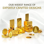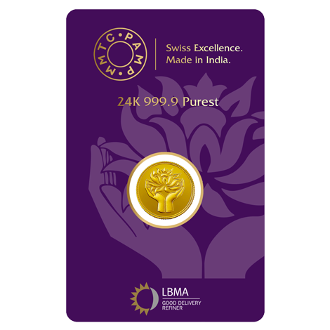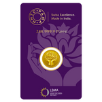 The lotus flower design is a popular symbol of purity, rebirth and enlightenment. These coins are often purchased as an investment or as a gift. The 0.5 gram Lotus Design Gold Coin is a small, collectible gold piece, typically minted from 24 karat (999.9 purity) gold. 24 karat gold is synonymous with the highest purity, but the global standard for the highest purity in both gold and silver products is 999.9 purity. MMTC-PAMP ensures that each of your purchases consistently meets these exceptional purities. Every 24 karat, 999.9 gold product you purchase will be carefully sealed and protected in assay-certified packaging, accompanied by an exquisite gift box. Whether you are investing in our gold range for personal savings, collecting these exquisite items, or gifting them to your loved ones on special occasions and festivals, MMTC-PAMP offers an extraordinary opportunity to embrace the essence of pure gold.