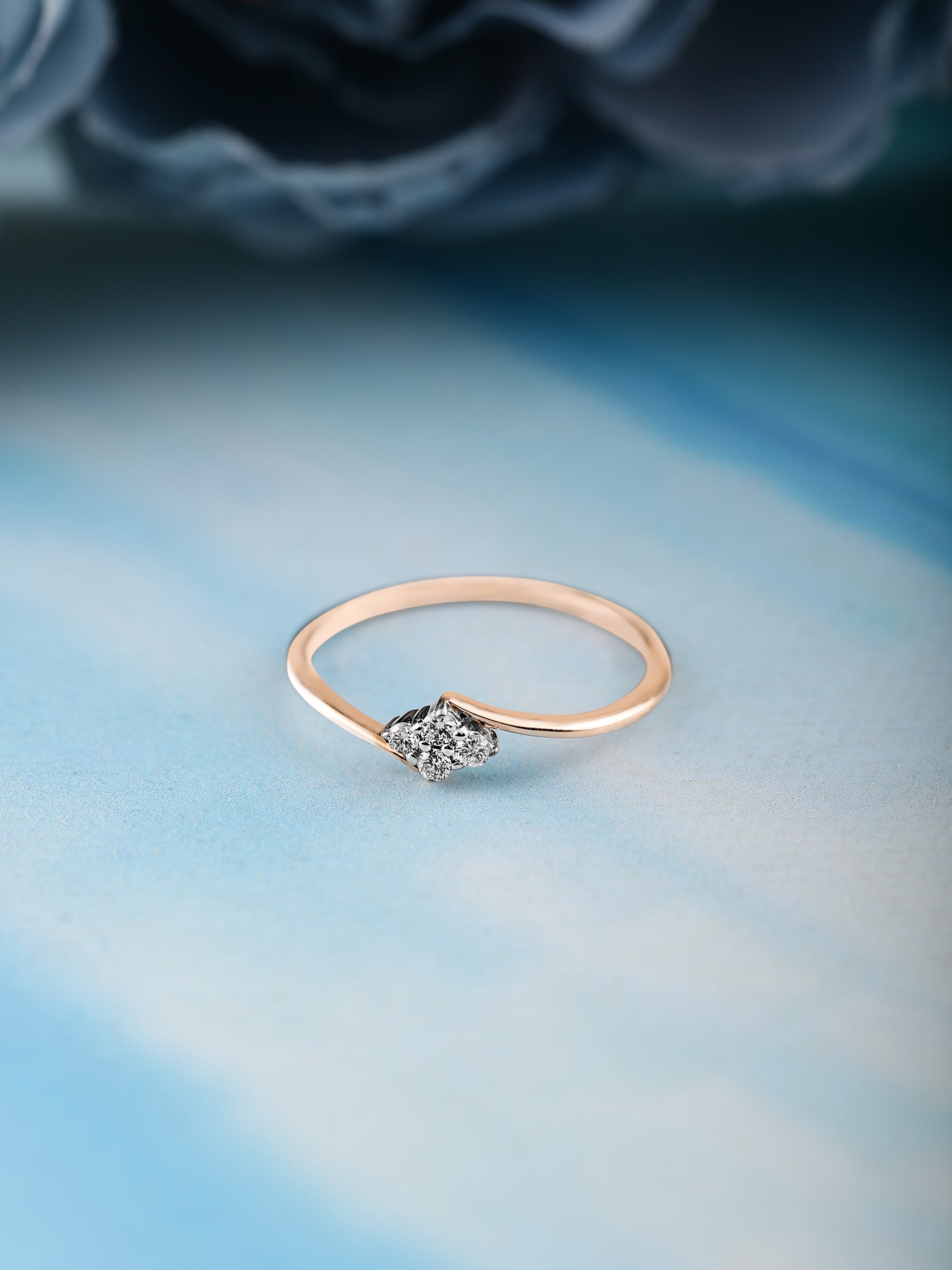 Majestic Bliss Diamond Ring, a symbol of elegance and enchantment that will leave you captivated. The Majestic Bliss Diamond Ring is a breathtaking piece crafted to perfection. It features a magnificent arrangement of four natural diamonds in the center, forming a stunning cluster. The round brilliant cut diamonds radiate brilliance and sparkle, creating a mesmerizing display of light. The band of the ring is elegantly crafted from rose gold, enhancing its allure and adding a touch of sophistication.