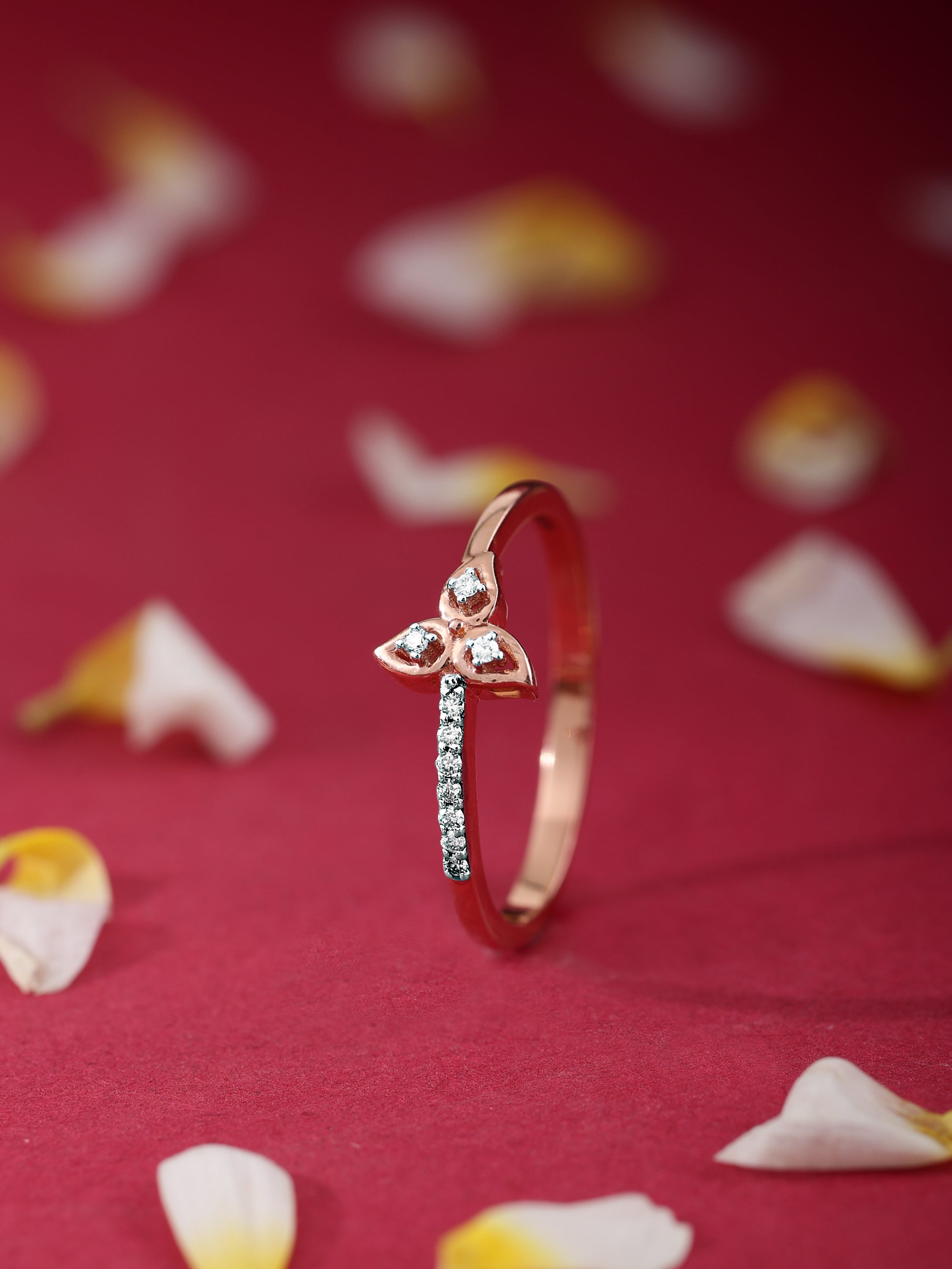 Introducing the Majestic Leaf Trio Ring, a timeless masterpiece that showcases the harmonious beauty of nature with its three delicately crafted leaves and a brilliant diamond nestled amidst the foliage. The Majestic Leaf Trio Ring captures the essence of natural elegance. Three intricately designed leaves symbolize growth, beauty, and grace. A sparkling diamond takes center stage, exuding brilliance and enchantment. The diamonds adorning the band add a touch of sophistication to the ring's exquisite allure.