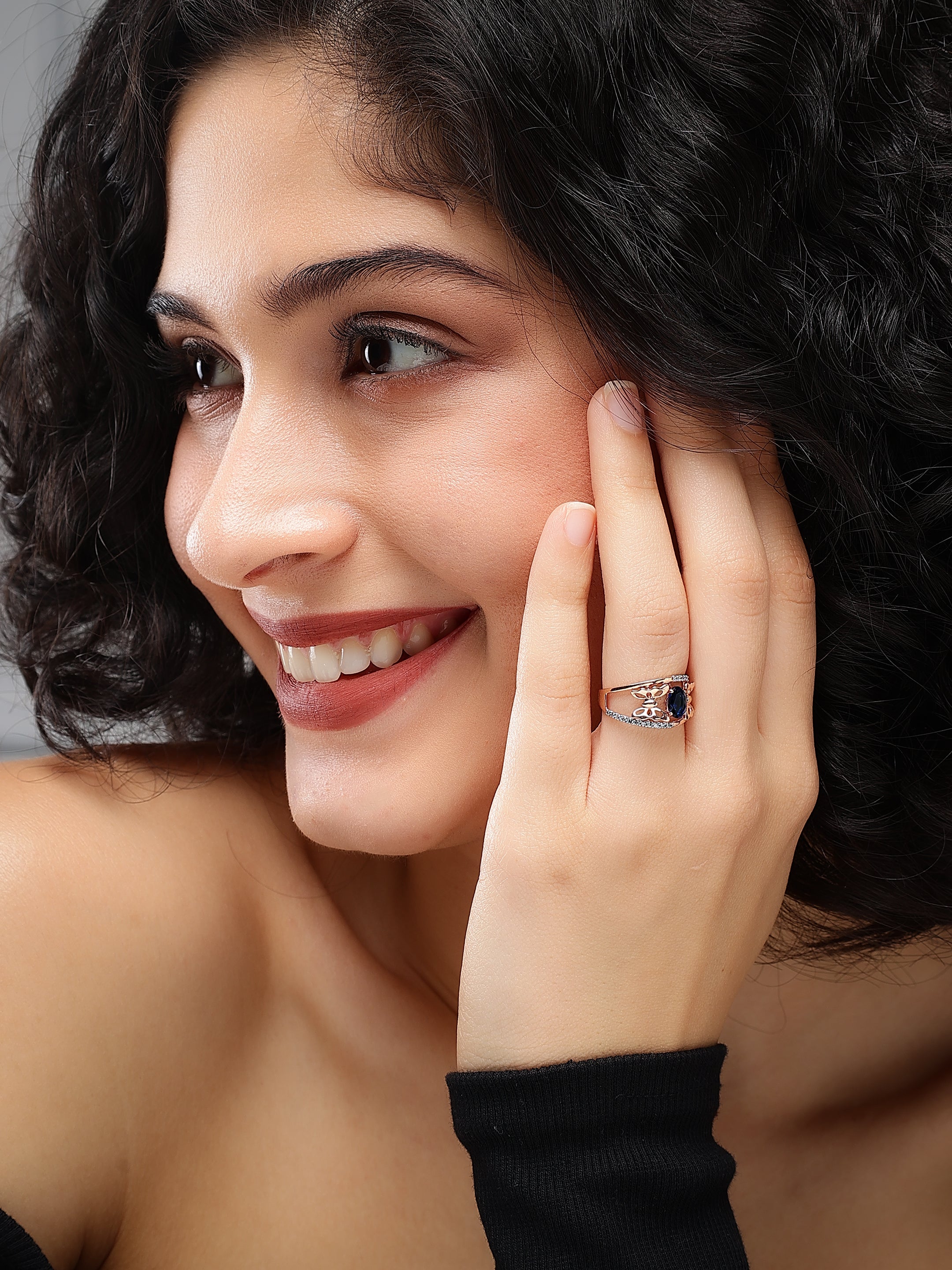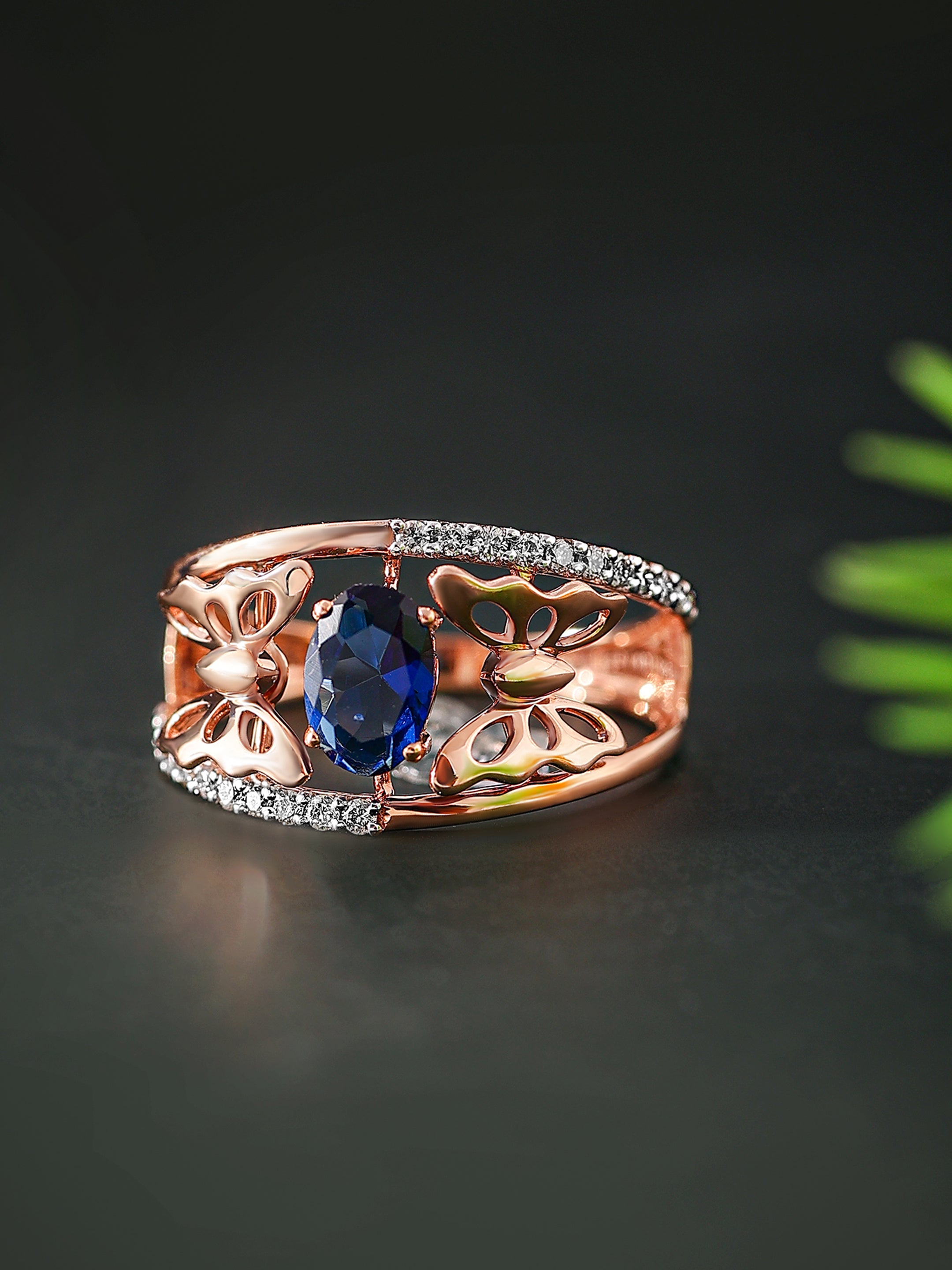Midnight Sapphire Dual Butterfly Diamond Ring