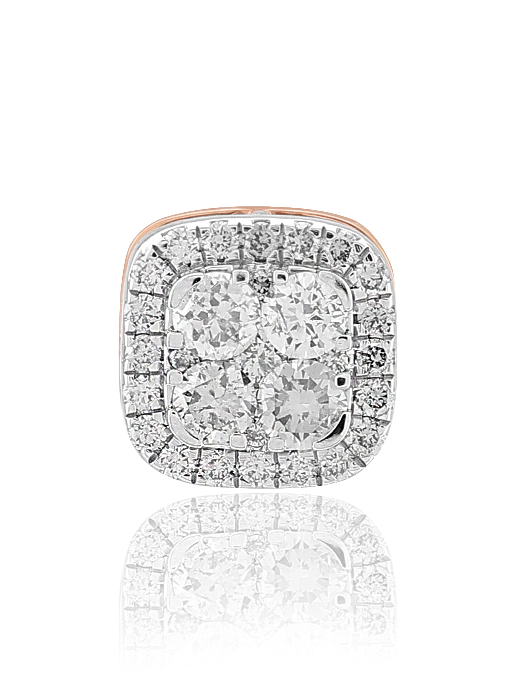 The Mini Imperial Glints Diamond Earrings are a true testament to opulence and elegance. These exquisite earrings feature a sophisticated square design, each adorned with a central cluster of radiant, meticulously cut diamonds. The intricate halo of smaller stones surrounding the central cluster enhances the overall brilliance, creating a dazzling display of light and sparkle from every angle. The symmetrical arrangement of the diamonds, coupled with the finely crafted setting, evokes a sense of timeless luxury and sophistication. Perfect for grand occasions or adding a touch of glamour to everyday attire, the Mini Imperial Glints Diamond Earrings are designed for those who appreciate the epitome of refined elegance and superior craftsmanship.