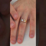 Introducing the Radiant Crossings Diamond Men's Ring: The Radiant Crossings Diamond Men's Ring is a remarkable union of classic design and modern flair. Crafted from yellow gold and partly rhodium plated, the gold band boasts a timeless elegance. At its core, intersecting horizontal lines come alive with the brilliance of 13 natural round brilliant diamonds. These diamonds are placed in a diamond shape, and each corner is graced by exquisite diamonds, symbolizing the harmonious crossing of tradition and innovation.
