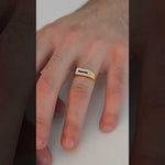 Introducing the Radiant Rectangle Cut Men's Diamond Ring: This ring captures the essence of contemporary elegance. A wide yellow-gold band, partly rhodium-plated, forms the foundation for this exquisite piece. At the heart of the ring, a dazzling rectangle shape adorned with natural round brilliant diamonds takes center stage. Within this rectangle, a smaller cutout rectangle adds a touch of artistic intrigue, forming a harmonious play of geometric brilliance.