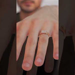 Introducing the Rectangle Studded Layer Diamond Ring: Elevate your style with the Rectangle Studded Layer Diamond Ring. Expertly crafted in gold, this ring features a unique design with two raised layers, adding depth and dimension to the band. The close band gracefully encircles your finger, offering comfort and elegance. At the center, a captivating rectangle gleams with natural round brilliant diamonds. The ring captures the essence of modern sophistication and the brilliance of sparkling diamonds.