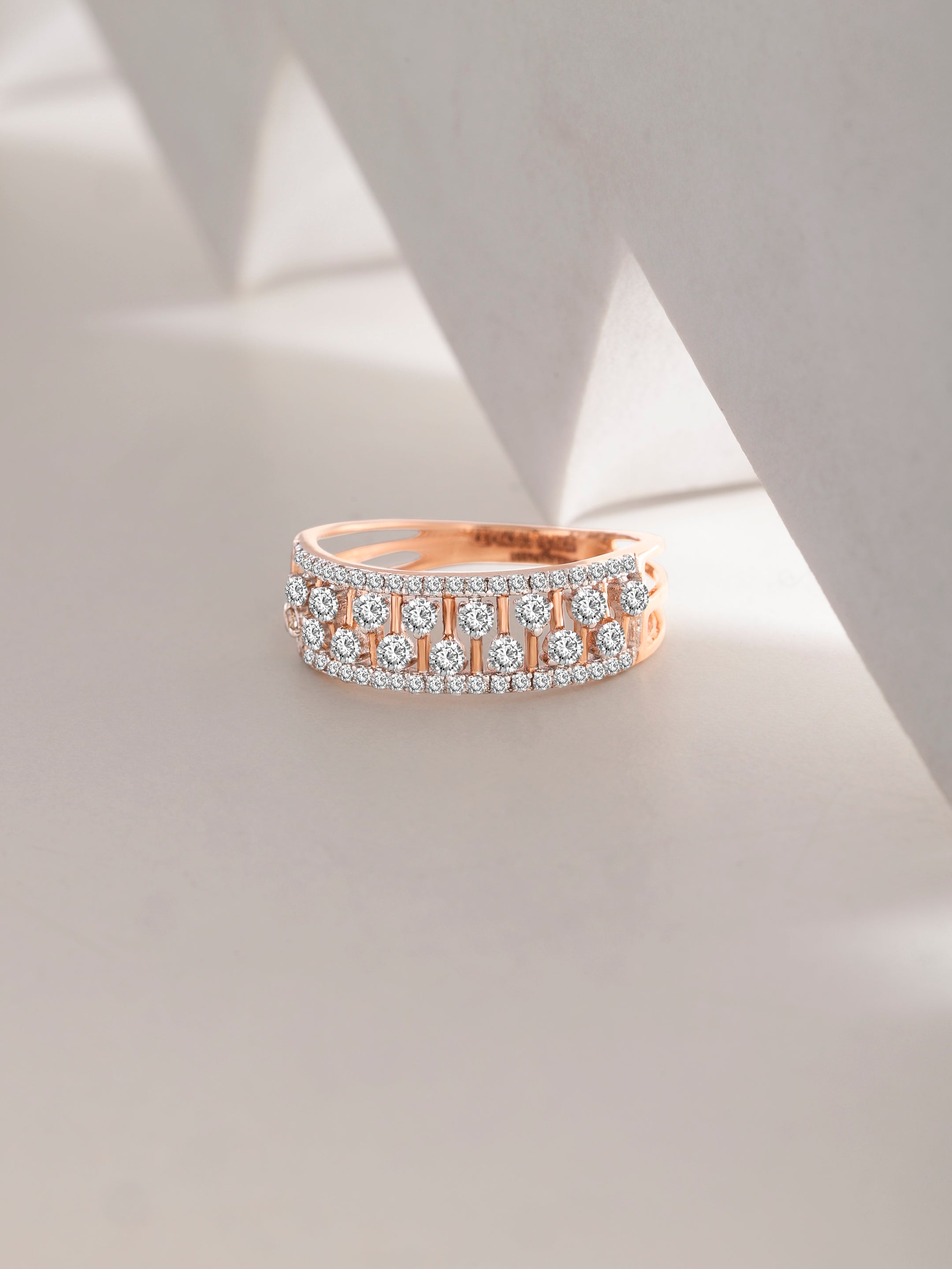 Introducing our exquisite Round Brilliance Diamond Ring, a mesmerizing piece that embodies the timeless beauty of round brilliant diamonds. The Round Brilliance Diamond Ring showcases a stunning gold band adorned with a multitude of 58 natural round brilliant diamonds. The diamonds are meticulousIy placed in layers, creating a captivating pattern that highlights the ring's round shape. This design accentuates the brilliance and sparkle of each diamond, making it a true work of art.