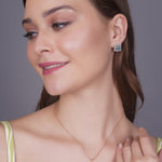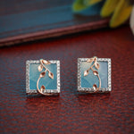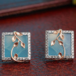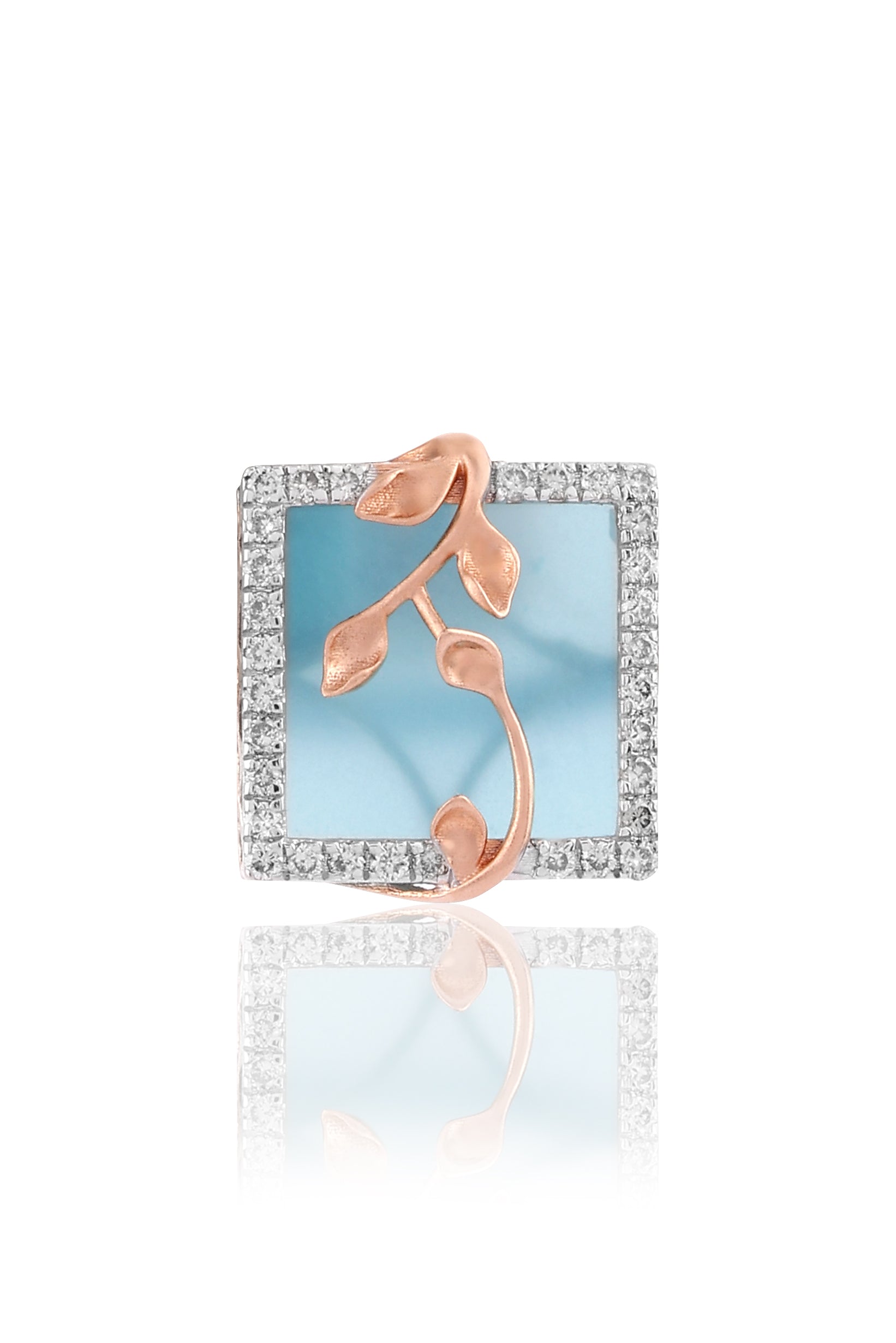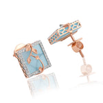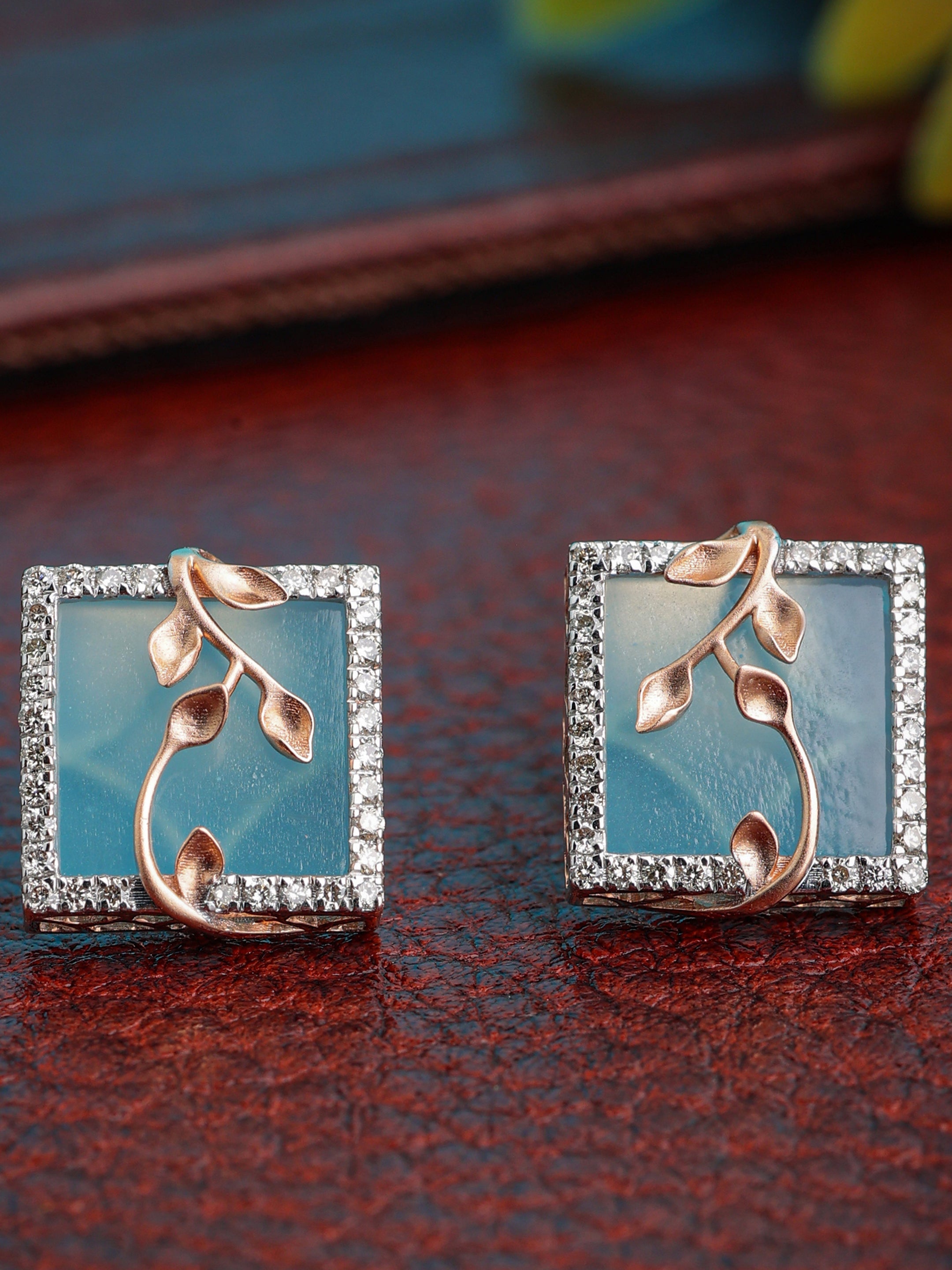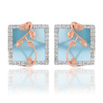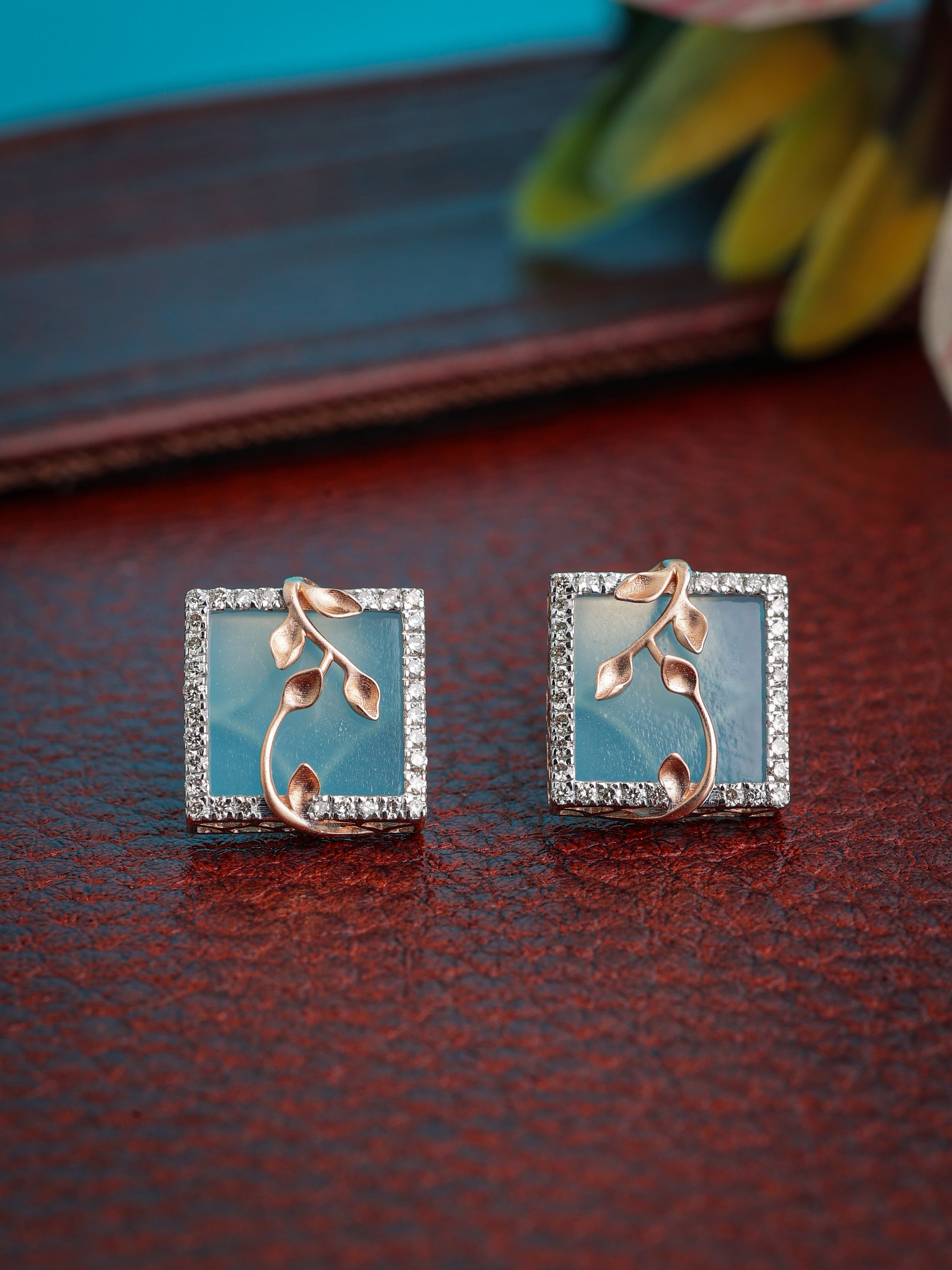 Discover the captivating allure of the Sky Strand Enamel Diamond Earrings – where brilliance meets enchanting blue hues. Indulge in the elegance of the Sky Strand Enamel Diamond Earrings. Crafted with precision, these earrings feature rectangular stud shapes, each adorned with intricate rose gold leaf motifs. The focal point of these earrings is the serene blue-enameled surface, reminiscent of the vast sky on a clear day.