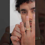 This men's ring is a stunning blend of classic design and modern elegance, perfect for the discerning gentleman. The band is crafted from high-quality yellow gold, exuding warmth and sophistication. Its clean, polished finish enhances the sleek and timeless look. The centerpiece of this ring is a brilliant-cut diamond, set in a secure four-prong setting that elevates its natural sparkle and brilliance. The diamond is framed by a subtle white gold accent, adding a contemporary touch and further highlighting the stone's luminosity. This combination of yellow and white gold creates a harmonious contrast, making the diamond appear even more radiant. Designed for both style and comfort, this ring is an exquisite choice for any formal or special occasion, symbolizing refined taste and enduring elegance.