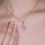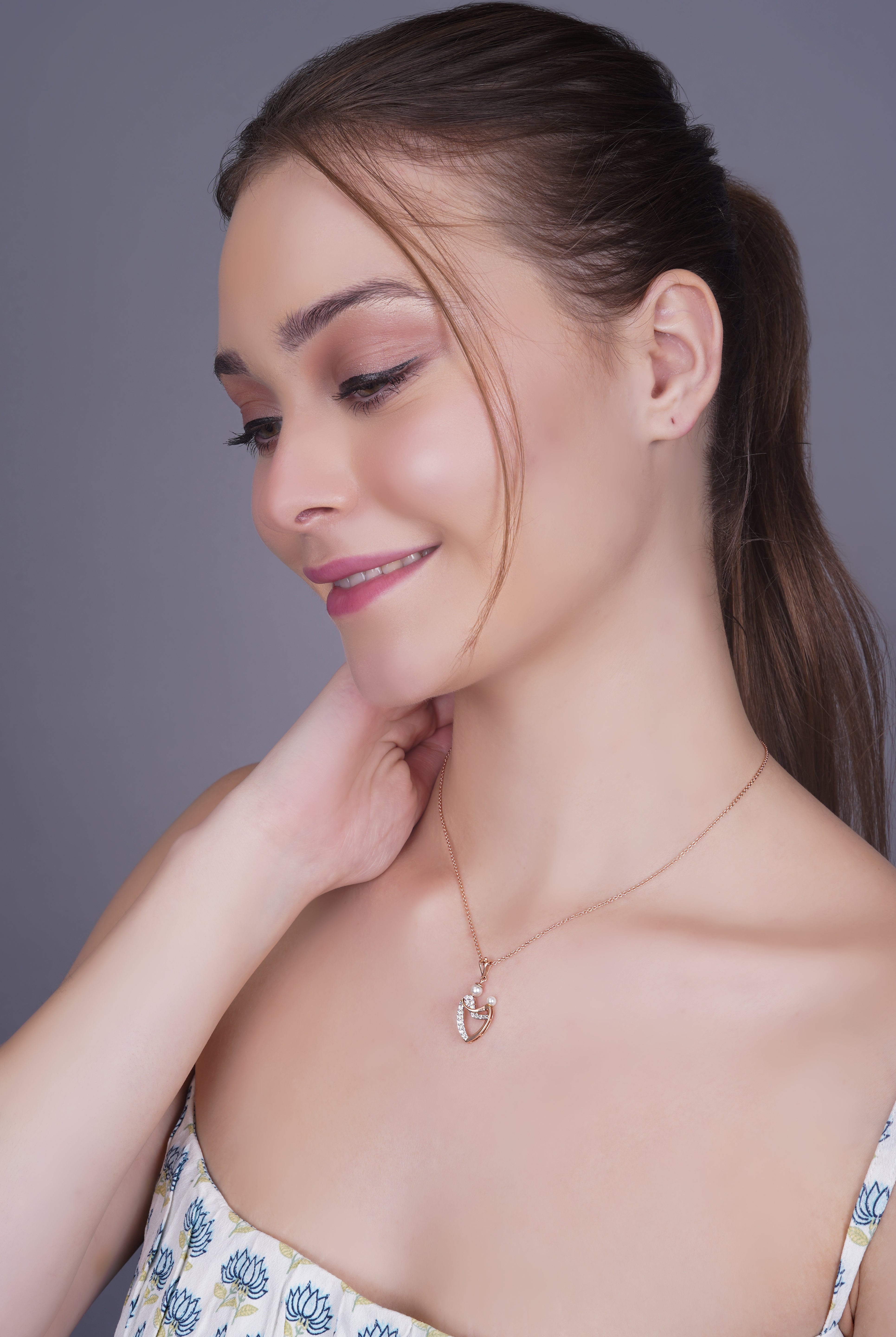 The Tender Hug Diamond Pendant is a symbol of enduring love and affection, beautifully captured in its exquisite design. At its center lies an open heart, adorned with a sparkling array of diamonds that radiate warmth and brilliance. One side of the heart is elegantly covered in diamonds, symbolizing the enduring bond between two souls, while the top of heart features two gemstones nestled together in a tender embrace. The placement of heart is wisely representing a loving hug. The intricate detailing and delicate craftsmanship of the pendant evoke a sense of intimacy and connection, making it a timeless expression of devotion and tenderness.