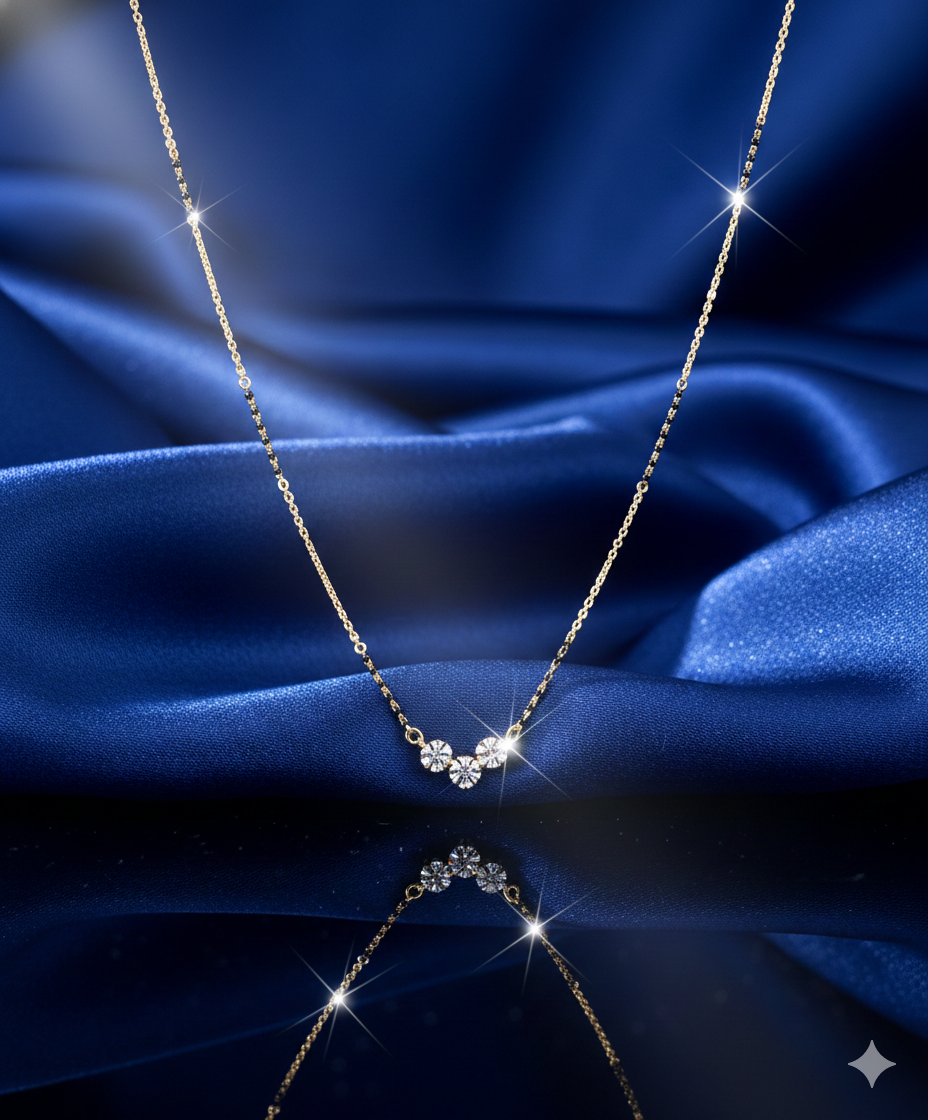 Embrace the perfect harmony of cultural heritage and contemporary grace with the Ethereal Blossom Mangalsutra, a piece designed to celebrate the enduring beauty of a sacred bond. This elegant 14k rose gold necklace features a delicate chain accented with traditional black beads, culminating in a feminine centerpiece composed of three shimmering floral motifs. Each petite flower is meticulously pavé-set with premium brilliant-cut diamonds, creating a soft, radiant glow that draws inspiration from a garden in bloom. The dainty and minimalist silhouette makes it an ideal accessory for the modern woman, offering a sophisticated sparkle that transitions effortlessly from everyday professional wear to evening elegance. Handcrafted with precision, this mangalsutra serves as a timeless symbol of love, blending spiritual significance with a refined, boutique aesthetic.
