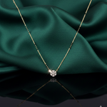 Celebrate the blossoming of a lifelong journey with the Ethereal Floret Mangalsutra, a piece that captures the delicate beauty of nature through a lens of modern luxury. This exquisite 14k rose gold necklace features a refined chain accented with traditional black beads, leading to a central pendant shaped like a graceful, six-petaled flower. At the heart of the blossom sits a brilliant-cut diamond cluster, surrounded by a delicate halo of shimmering pavé-set diamonds that trace the edge of each petal to create a mesmerizing sunburst effect. The scalloped edges and light, open-work design give the pendant a soft, feminine silhouette that honors heritage while remaining perfectly suited for contemporary styling. Handcrafted for the woman who values artisanal grace, this mangalsutra provides a radiant and sophisticated sparkle that transitions effortlessly from elegant daily wear to formal celebratory occasions.