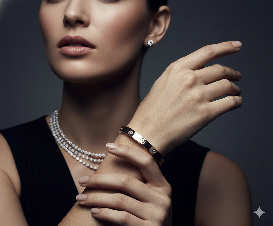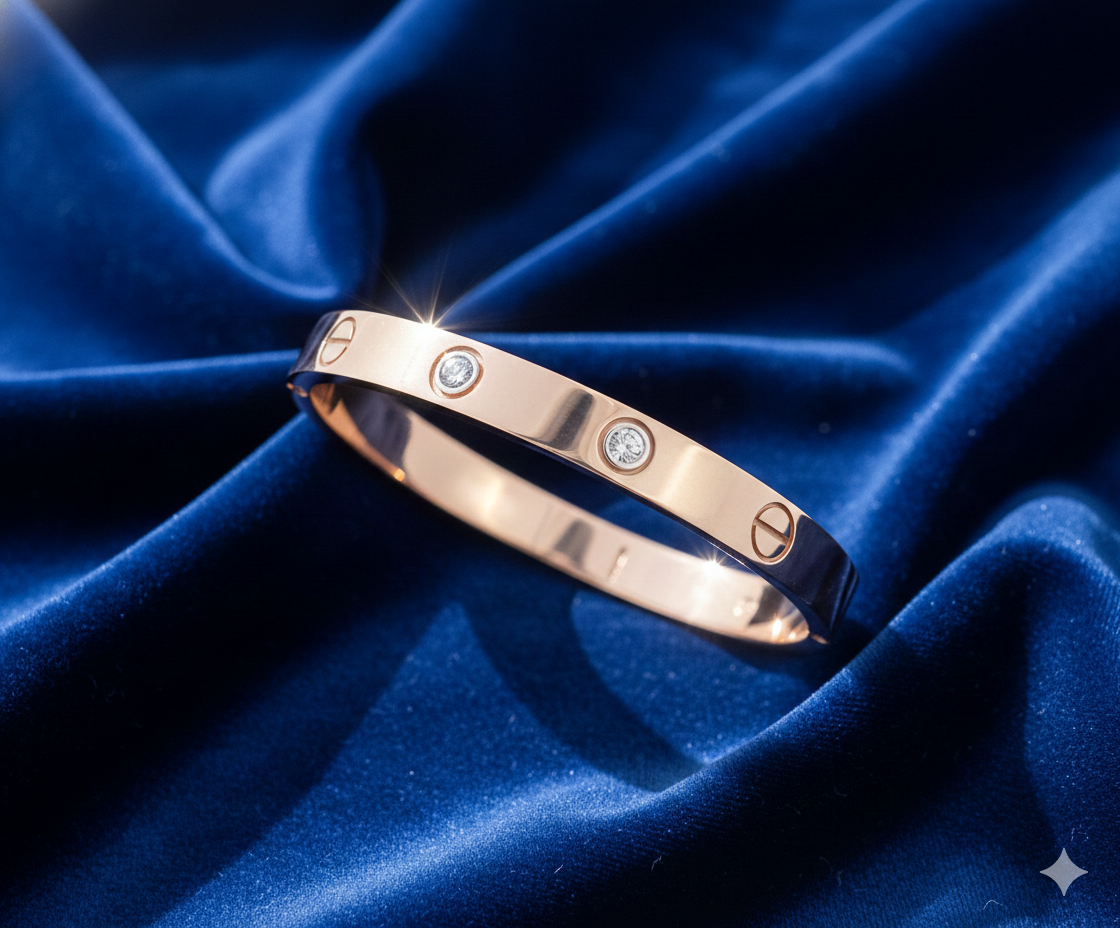Make a powerful statement of refined masculinity with the Titan Heritage Bracelet. This masterfully crafted bracelet features a high-polish rose gold band characterized by its bold, architectural silhouette and industrial-inspired screw-head motifs. Seamlessly integrated into the design are precision-set, brilliant-cut diamonds that provide a sophisticated shimmer without overpowering the piece's clean lines. Handcrafted for the modern professional, this bangle represents a perfect fusion of strength and luxury. Its secure, streamlined fit makes it an ideal standalone accessory or a distinguished addition to a luxury watch pairing.
