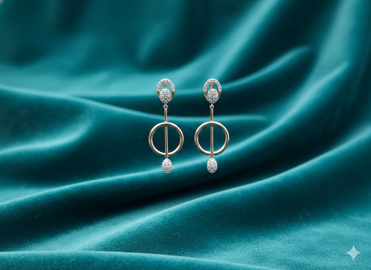 the Zenith Drops feature a cascading sequence of diamond clusters that lead to a bold, open-circle finish. The graduated stones create a rhythmic flow of light, drawing the eye downward and elongating the neck. These earrings are the personification of red-carpet glamour, offering a high-fashion silhouette that celebrates the pinnacle of DIAVO’s design excellence.