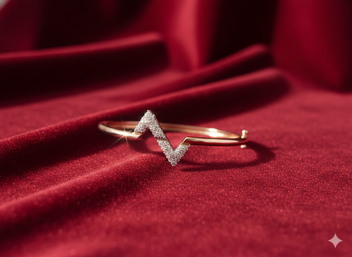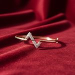 Energize your accessory collection with the Zenith Lightning Bolt Bangle, a striking piece that captures the raw power and beauty of nature in a sleek, contemporary silhouette. This avant-garde bangle is expertly crafted in 14k yellow gold, featuring a minimalist, high-polish band that leads to a dramatic central lightning bolt motif. The jagged geometric symbol is meticulously encrusted with a dense field of shimmering pavé-set diamonds, creating a concentrated surge of brilliance that catches the light from every angle. With its seamless hinge and modern, architectural edges, this handcrafted bangle is designed for the bold trendsetter who seeks a definitive statement of strength and high-fashion luxury. It serves as a captivating signature piece, perfect for adding a jolt of sophisticated glamour to a minimalist evening look or an edgy daytime ensemble.
