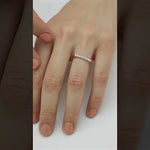 This distinctive ring features a unique vertical design, with a slim rose gold band that beautifully contrasts with a row of brilliant white diamonds set in a straight line. The diamonds are meticulously placed in a pavé setting, creating an elegant and uninterrupted sparkle that ascends vertically along the band. The minimalist design highlights the modern aesthetic, making it a perfect piece for those who appreciate contemporary elegance with a touch of classic sophistication. This ring is ideal for making a statement of refined taste and is perfect for any special occasion or as an exquisite addition to everyday wear.