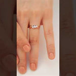 This elegant rose gold ring features a unique design that combines modern aesthetics with timeless elegance. The band gracefully twists into an infinity symbol, symbolizing eternal love and unity. Nestled within the center of the infinity loop are three stunning round-cut diamonds, each securely set in a classic bezel setting. The diamonds are perfectly aligned, with the central diamond slightly larger, drawing focus to its brilliant sparkle. The warm hue of the rose gold enhances the radiance of the diamonds, creating a harmonious blend of color and light. This ring's delicate yet striking design makes it an ideal piece for celebrating life's most precious moments.