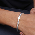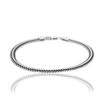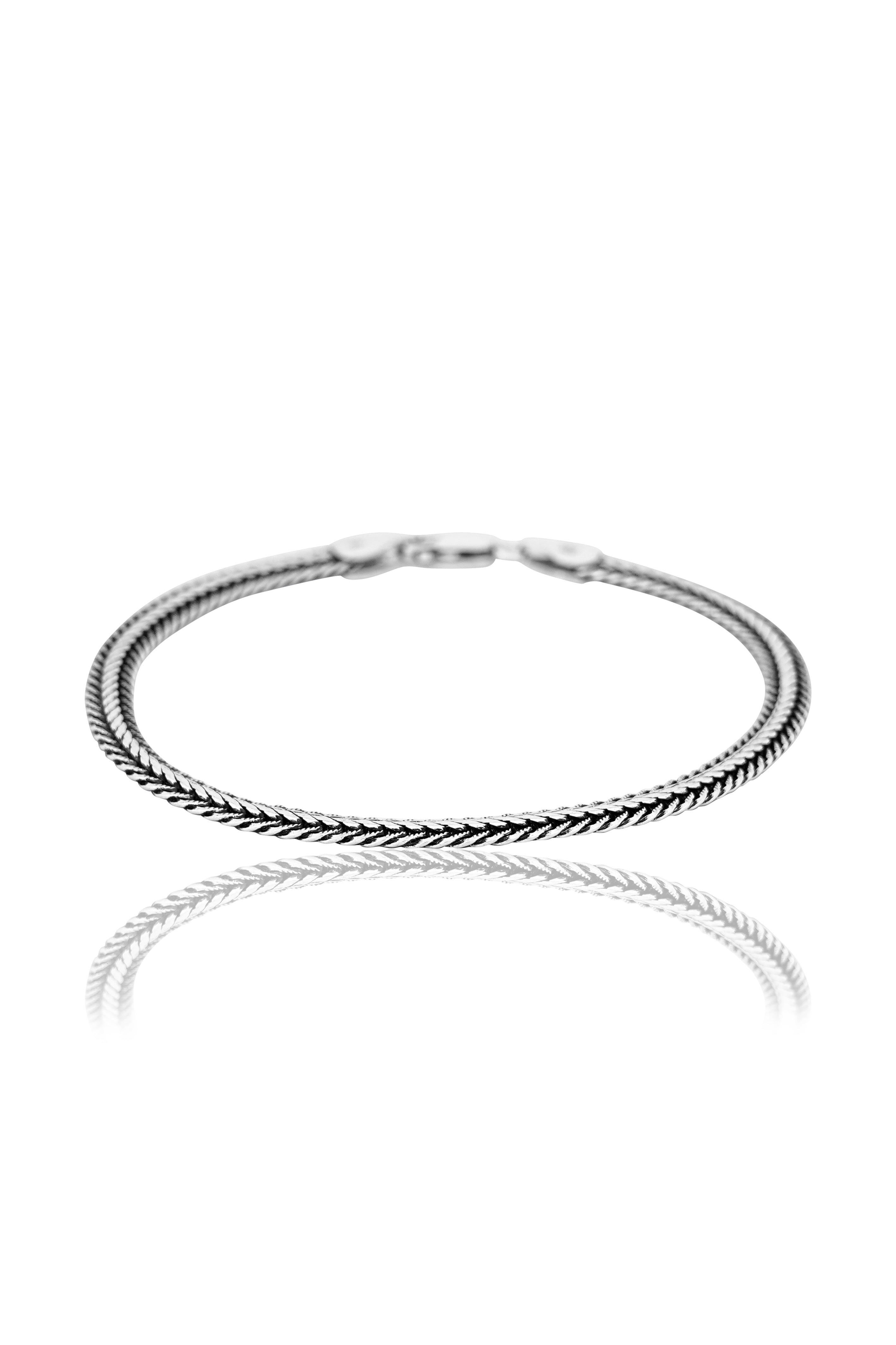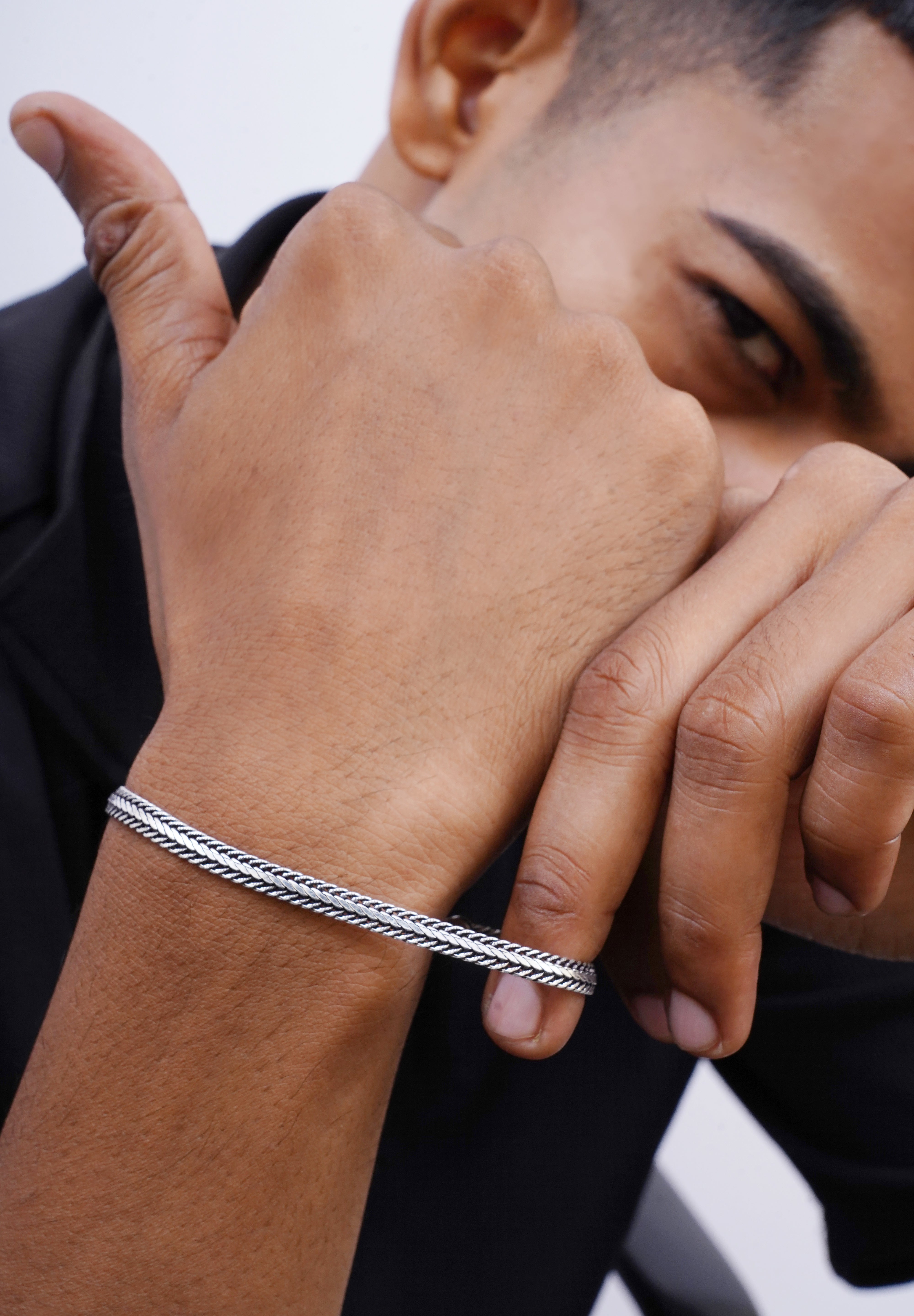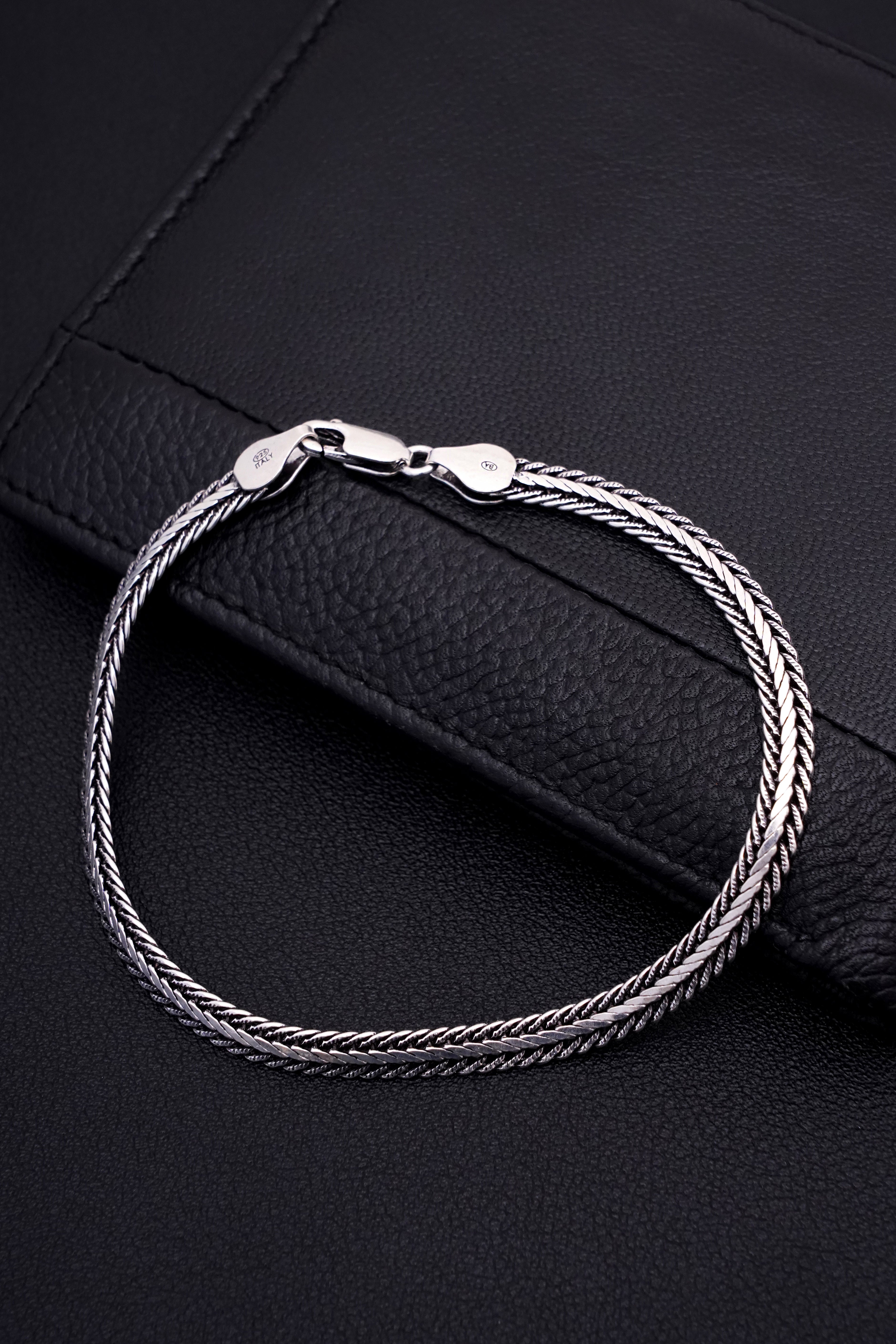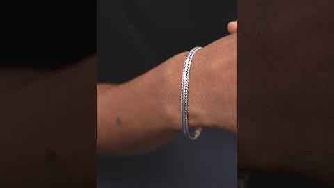 This Vortex Braided Chain Men's Silver Bracelet with rhodium plating is crafted with an intricately woven rope-style chain, creating a unique blend of elegance and strength. The twisted helix-like design enhances texture and depth, making it a standout piece for modern men. The bracelet's high-polish rhodium finish provides a lustrous, anti-tarnish surface that ensures durability. Its sleek clasp mechanism seamlessly integrates with the design, offering both security and sophistication. Whether worn solo or layered, this bracelet embodies a timeless appeal suitable for casual and formal looks alike.