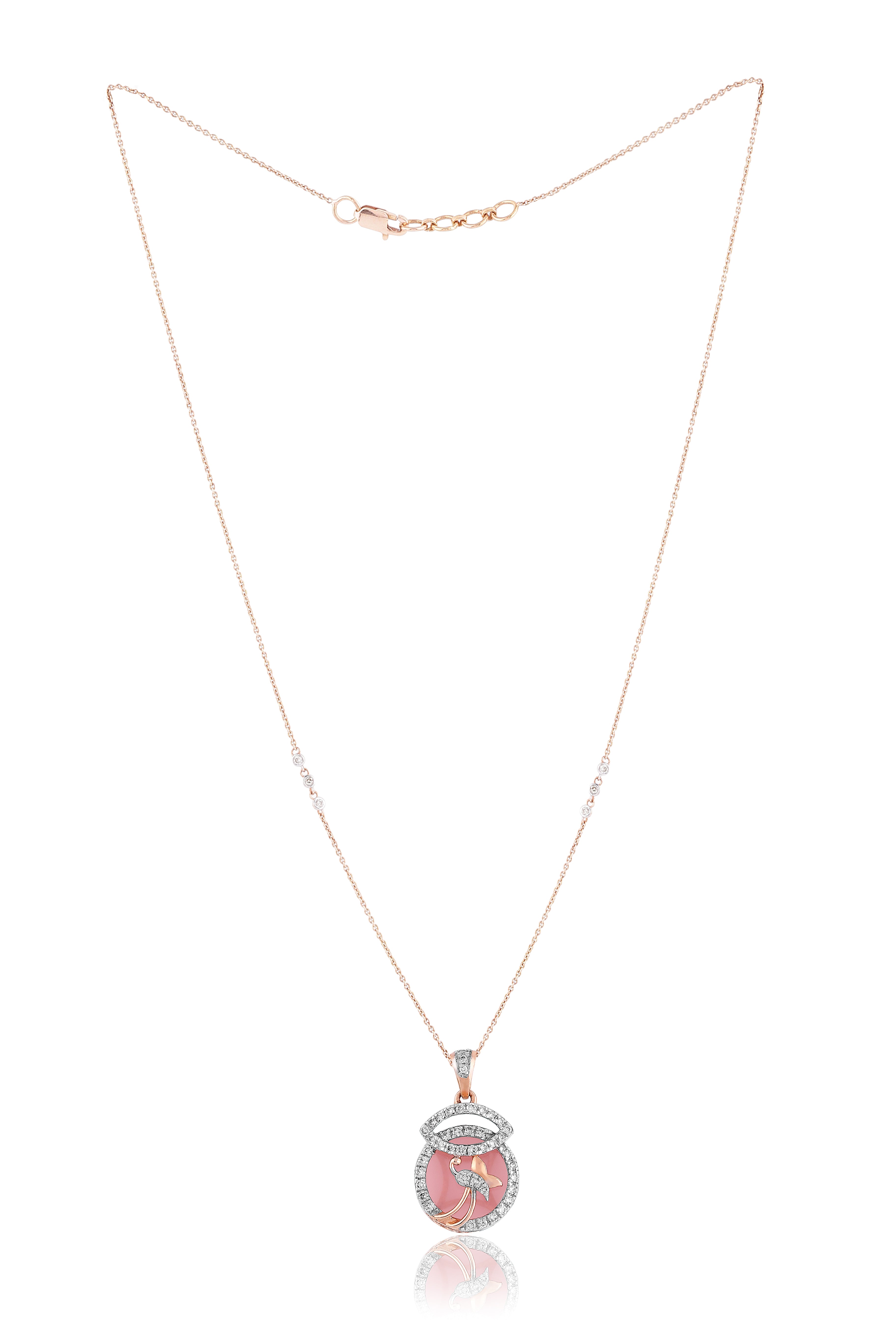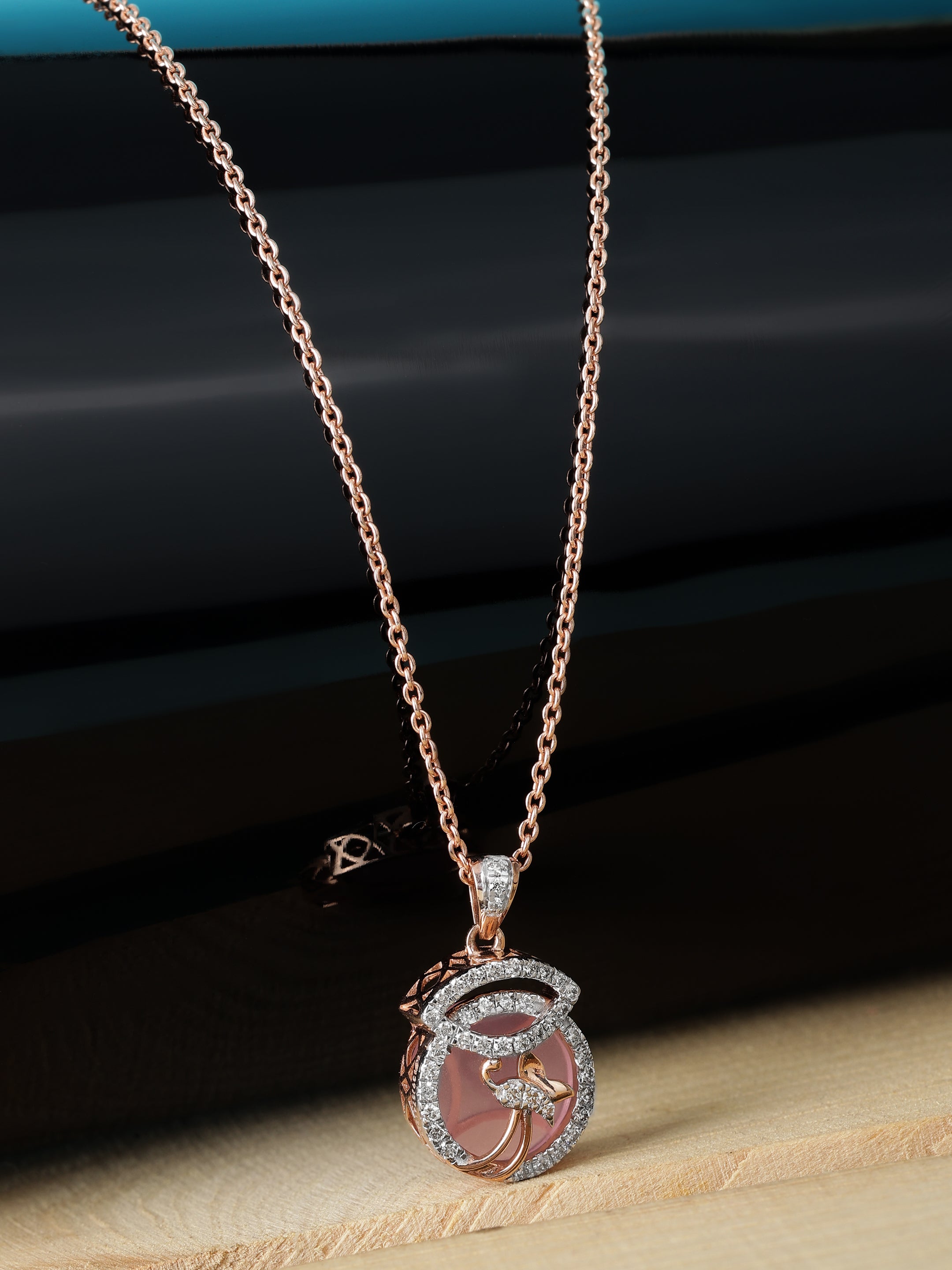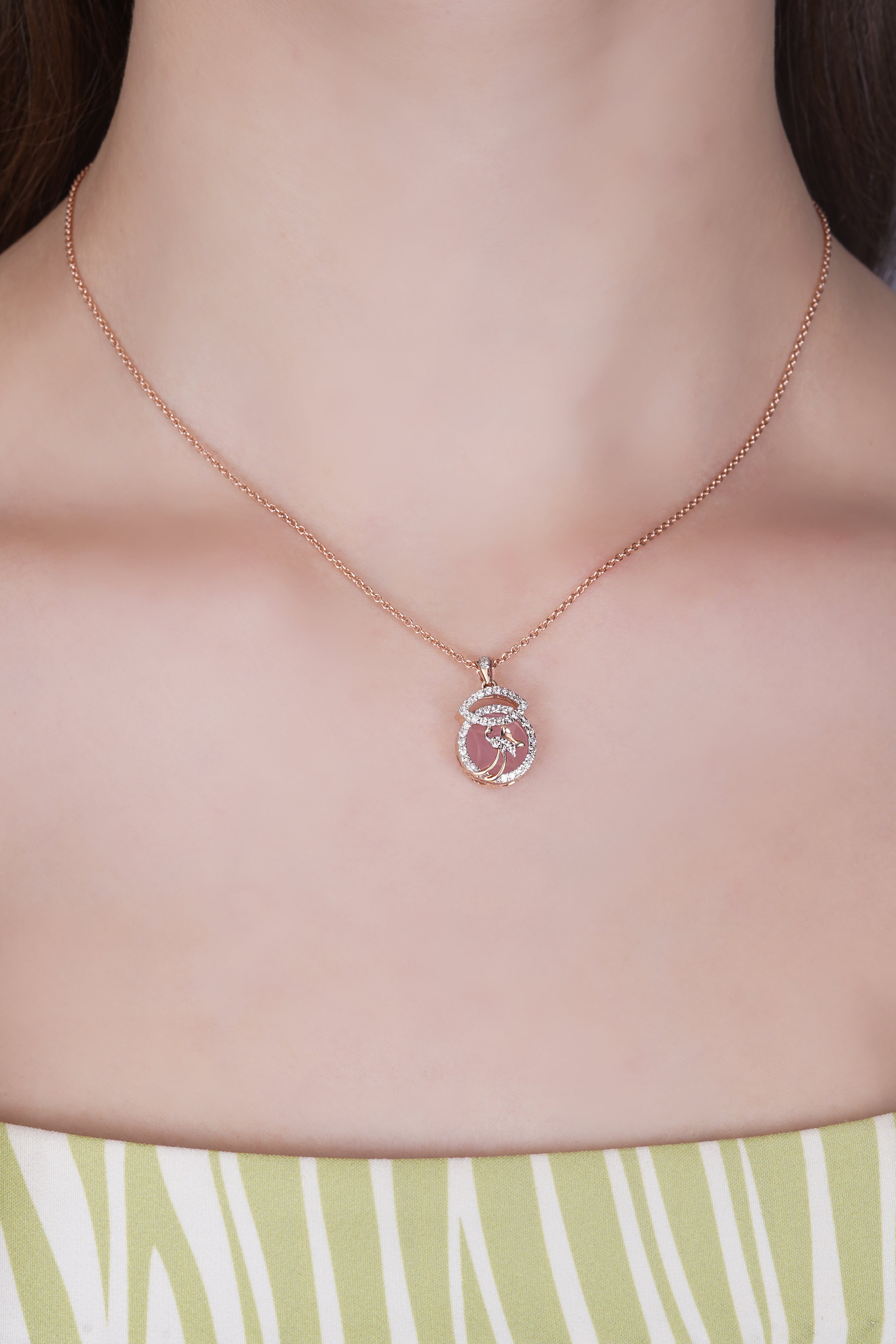 Discover our Wildflower Frost Diamond Pendant – a harmonious blend of natural charm and refined sophistication. The Wildflower Frost Diamond Pendant beautifully encapsulates the essence of nature's warm hues with a touch of refined elegance. Crafted with precision, this pendant features an alluring oval shape with a brownish background that evokes the earth's natural tones. A layer of natural round brilliant diamonds encircles the oval, casting a radiant brilliance that contrasts gracefully with the pendant's warm color palette. A butterfly-inspired brooch graces the design, adding a touch of delicate beauty.